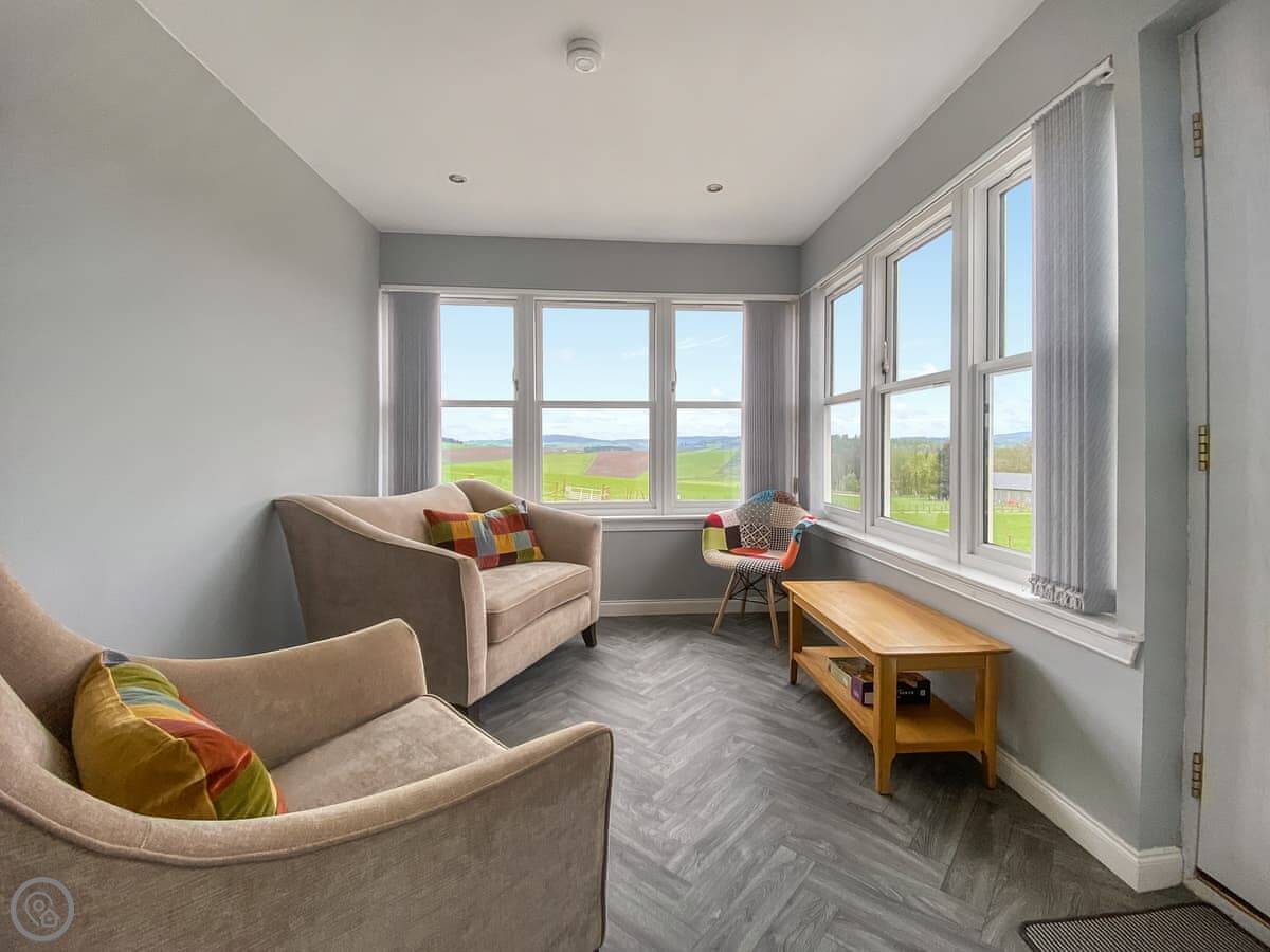 Guise Cottage is on our farm in Kirkton of Tough. It's a working farm with cattle and sheep, so you'll see them in the fields. The cottage is attached to our house, but you have your own entrance and a private garden area.