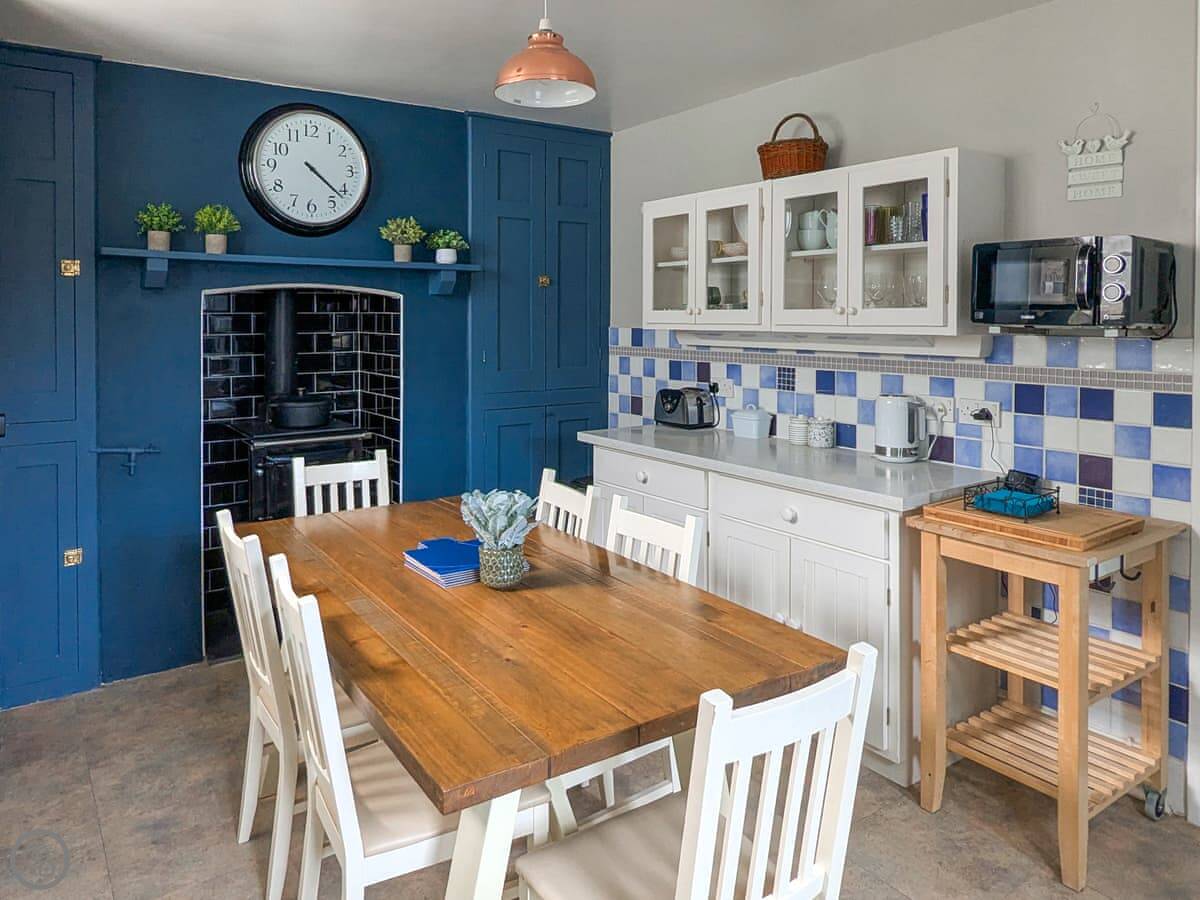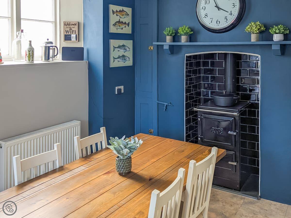 Inside, it’s got a wood burner in the living room and a fireplace in the kitchen-diner. There’s a washing machine and a dishwasher. Bedding and towels are included. Parking is on-site, for one car usually.
