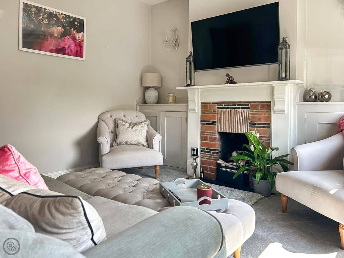 This is Lavender Cottage in Kirkby le Soken. It's a two-up two-down cottage, end of terrace. Sleeps four, two bedrooms, one bathroom.