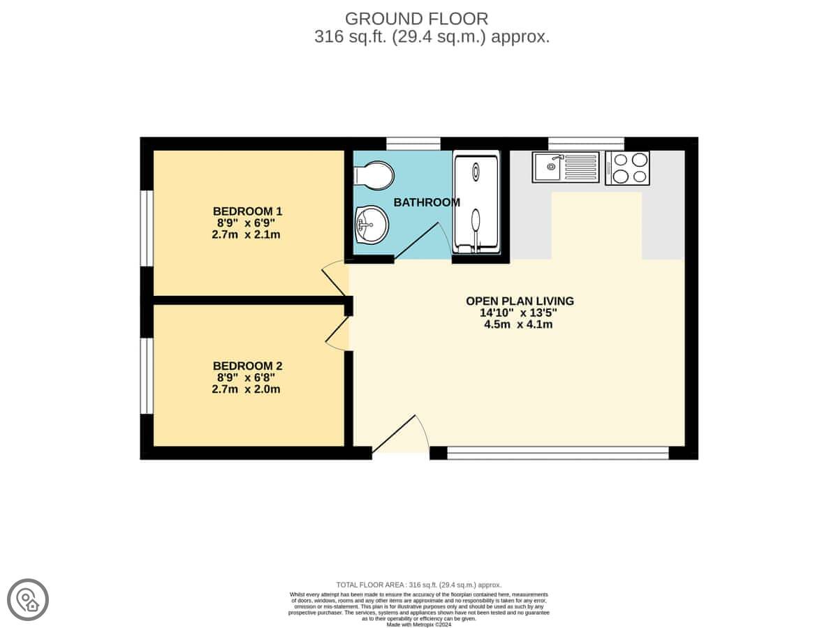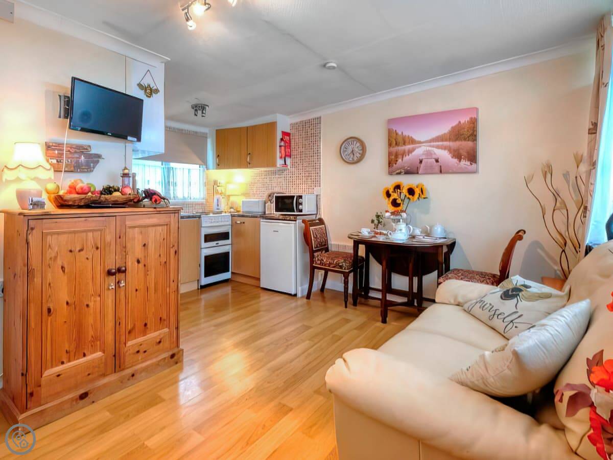 It sleeps two, has one bedroom and one bathroom. It got a 4 Star rating. It's all on one level, which is useful. It's detached so you've got your own walls.