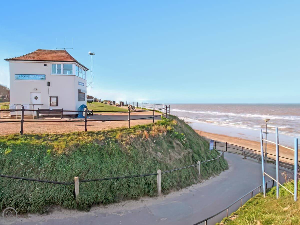 The Bee's Knees is a bungalow. It's on a chalet park in Mundesley, about a ten minute walk from the beach.