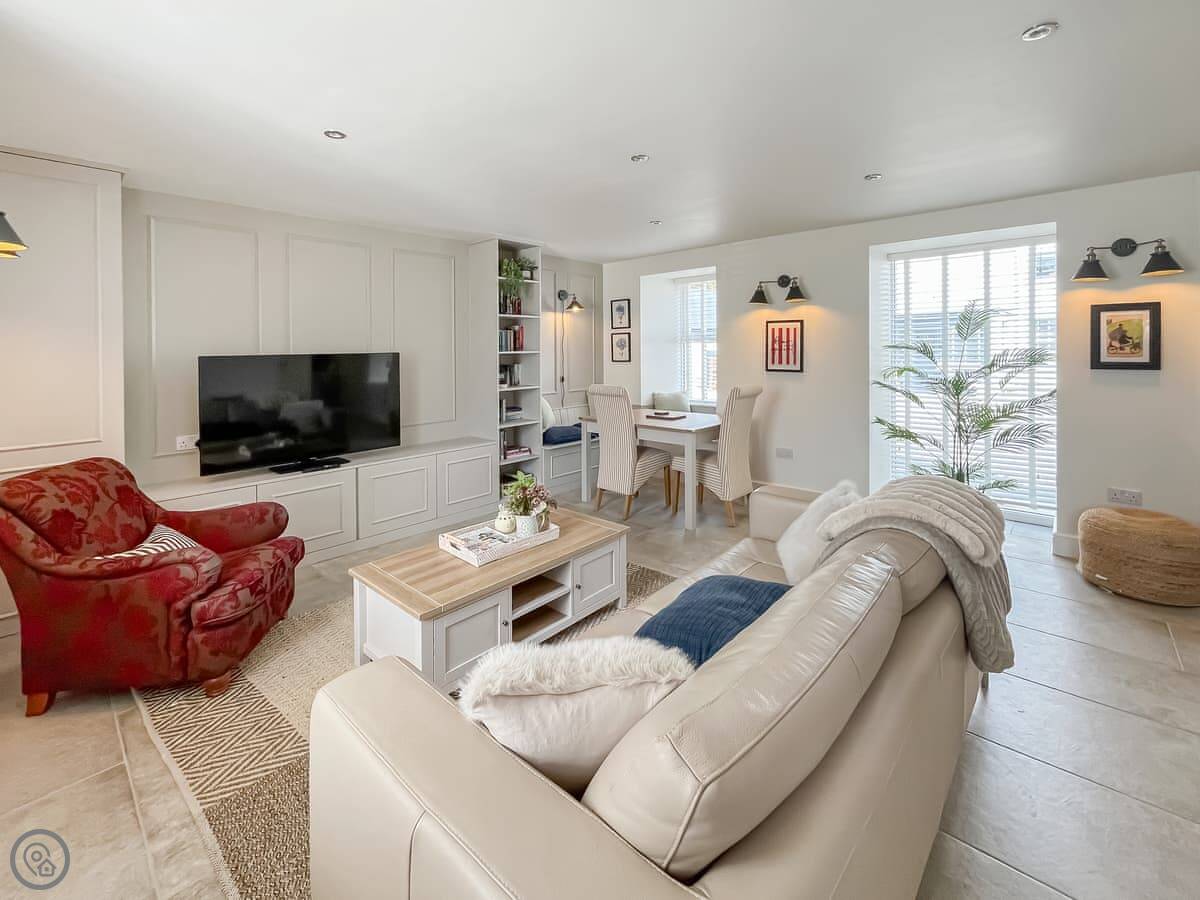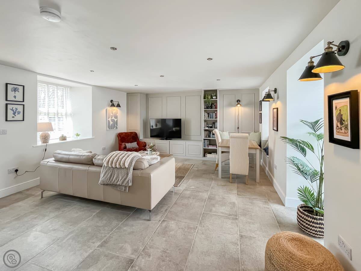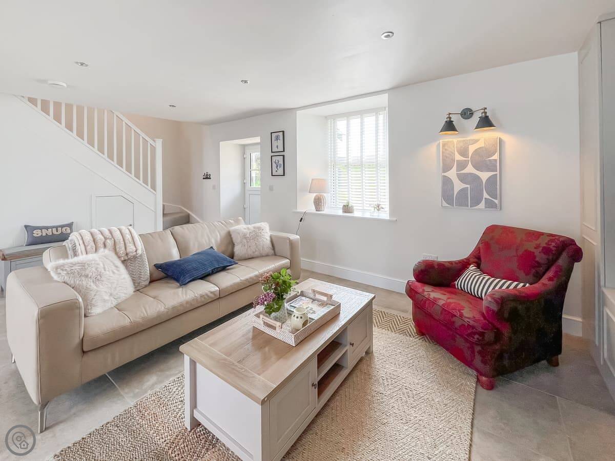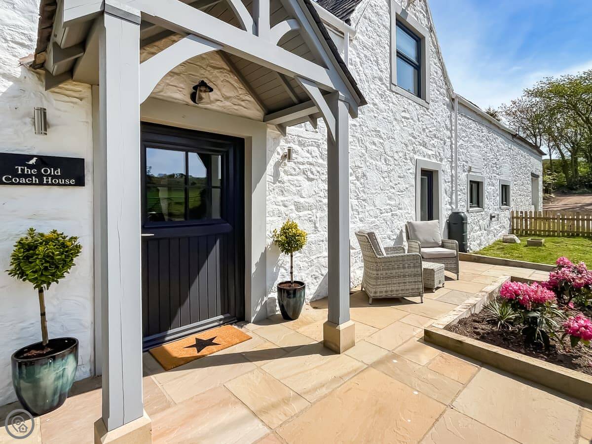 The Old Coach House is near Auchencairn, about five miles from Dalbeattie. It's a converted coach house, all on its own next to the main house. You see the sea across the fields, and it's a two minute walk down to the shore at Balcary Bay.