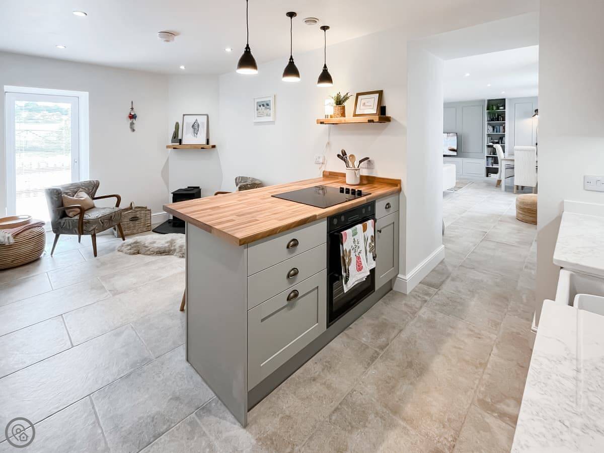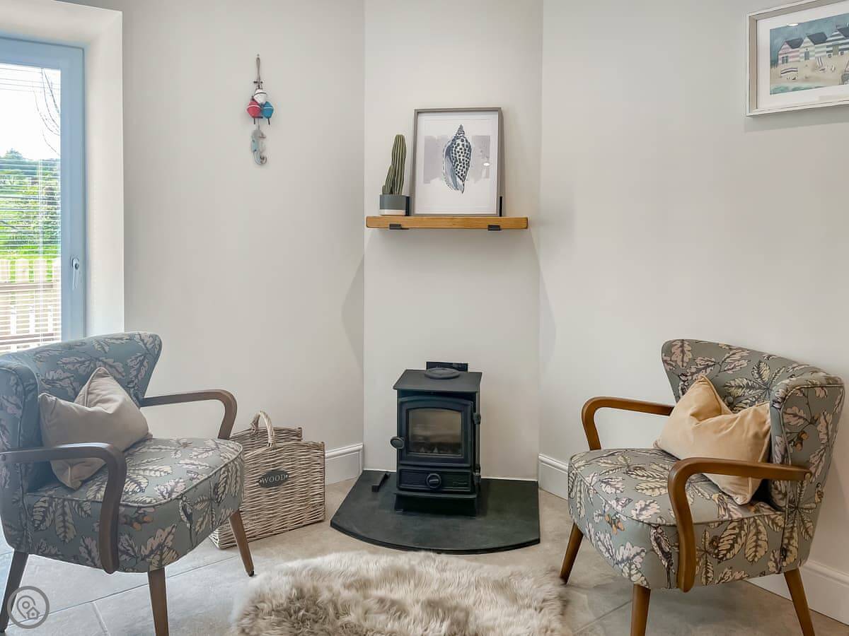 It's quiet here. You'll hear birds and the sea. The kitchen is well equipped and there's a wood burning stove. Firewood is provided. The garden area at the front is enclosed.