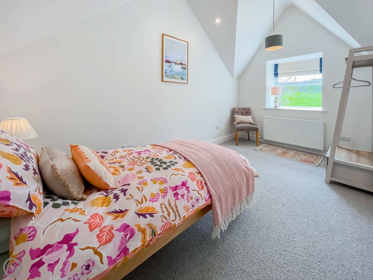 The cottage sleeps two, max. There are two bedrooms upstairs: one with a kingsize bed and one with a single bed. It's rated 4 Star, which I think reflects the standard. The upstairs is under the eaves, so watch your head on the beams if you're tall.