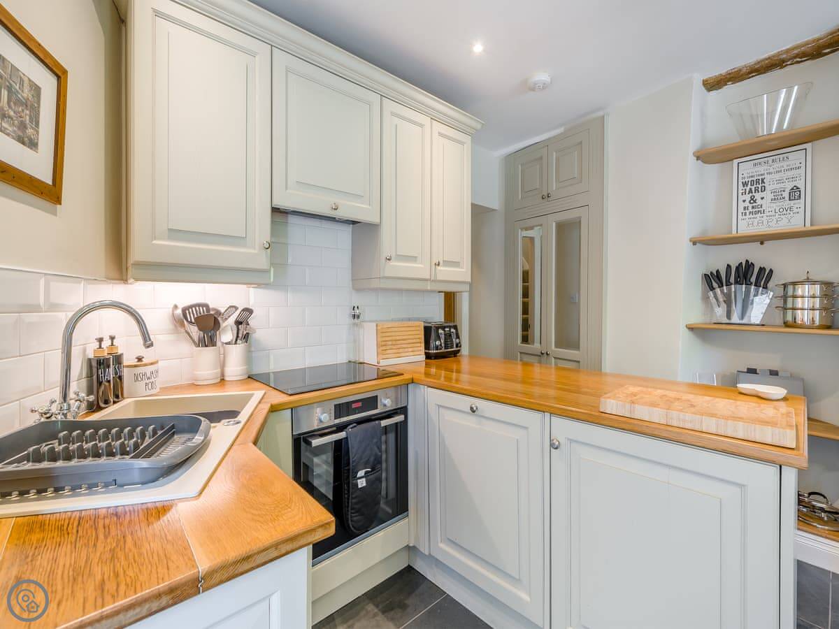 It's a 5 Star place, which means it's been finished to a high standard. Underfloor heating on the ground floor, a wood burner in the living room, that sort of thing. The kitchen is well-equipped if you're planning to cook. The garden at the back is enclosed and gets the sun in the afternoon.