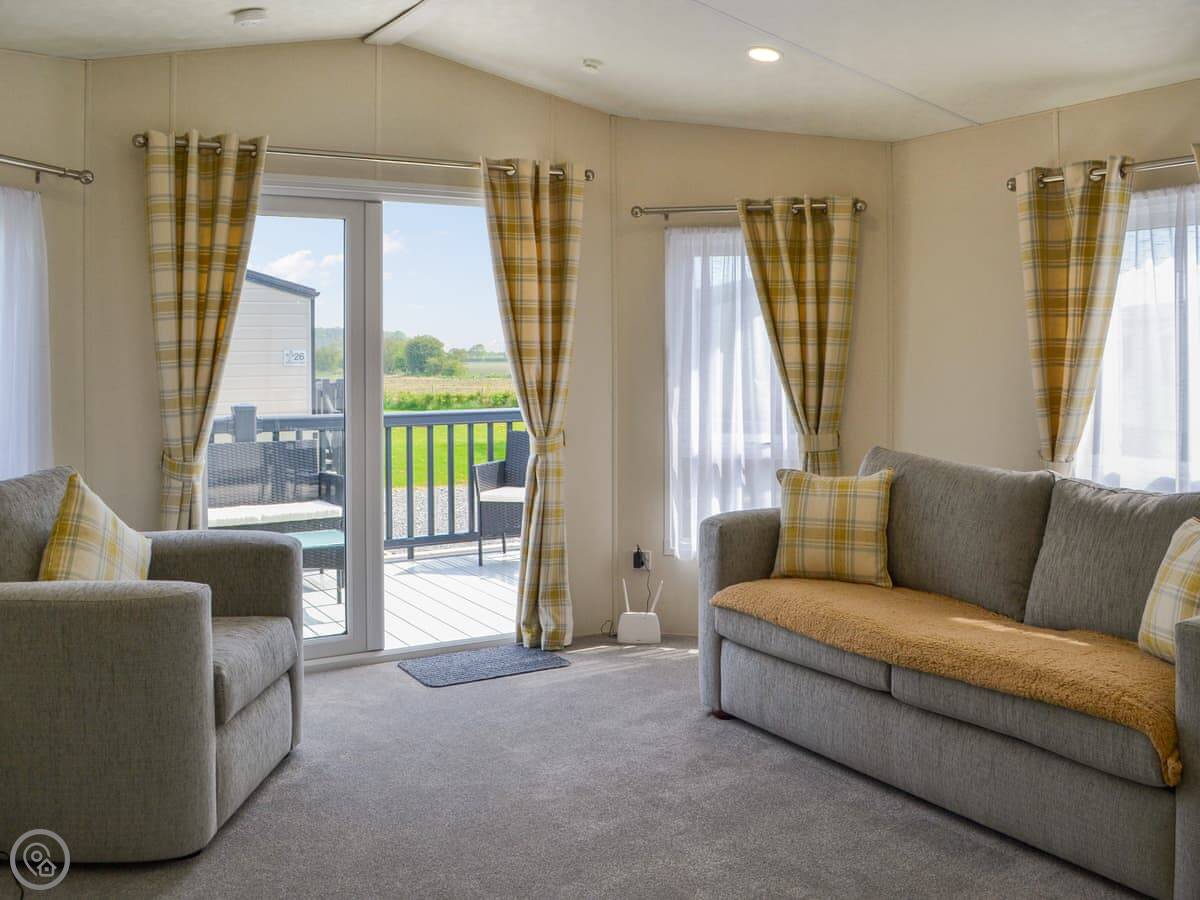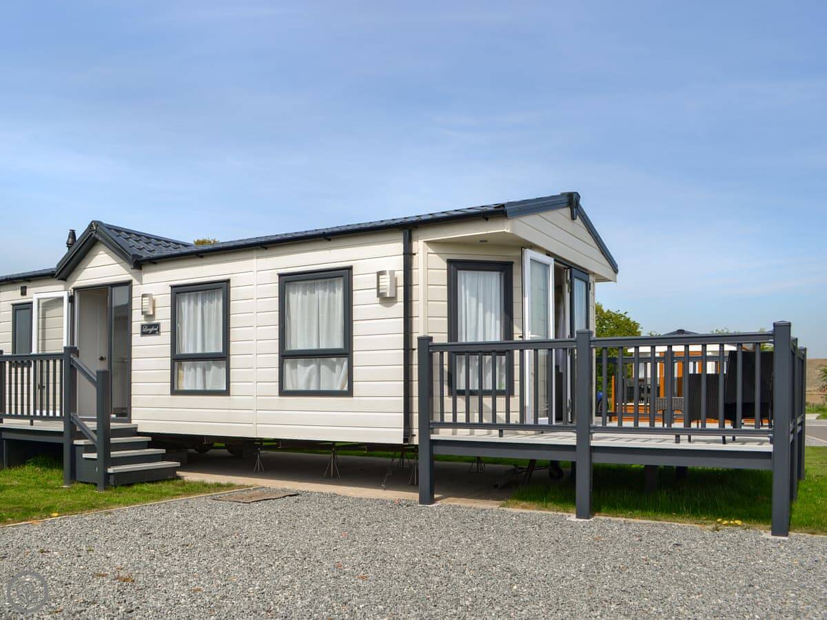 Right, this is Lodge 46. It's on a holiday park just outside Bridlington, near Carnaby. It's a detached lodge, so you're not joined on to anyone.