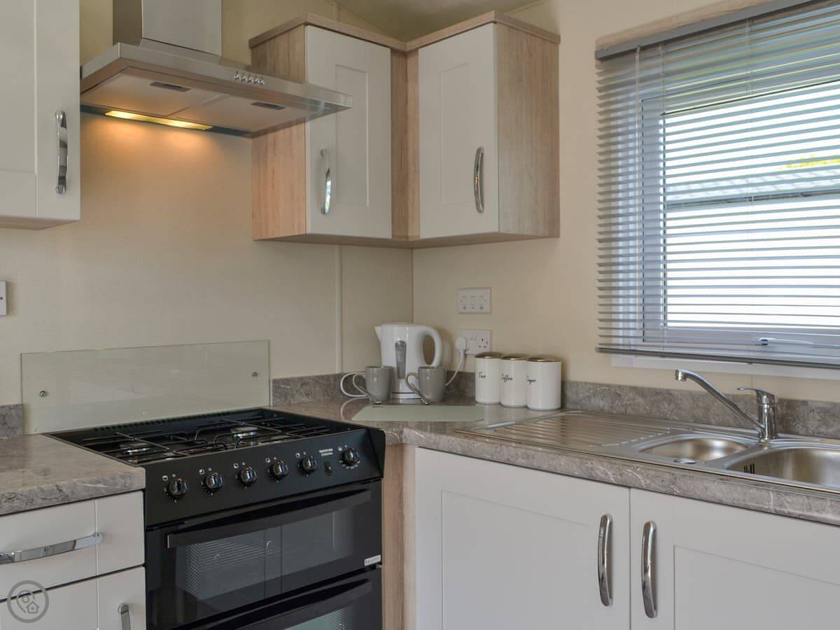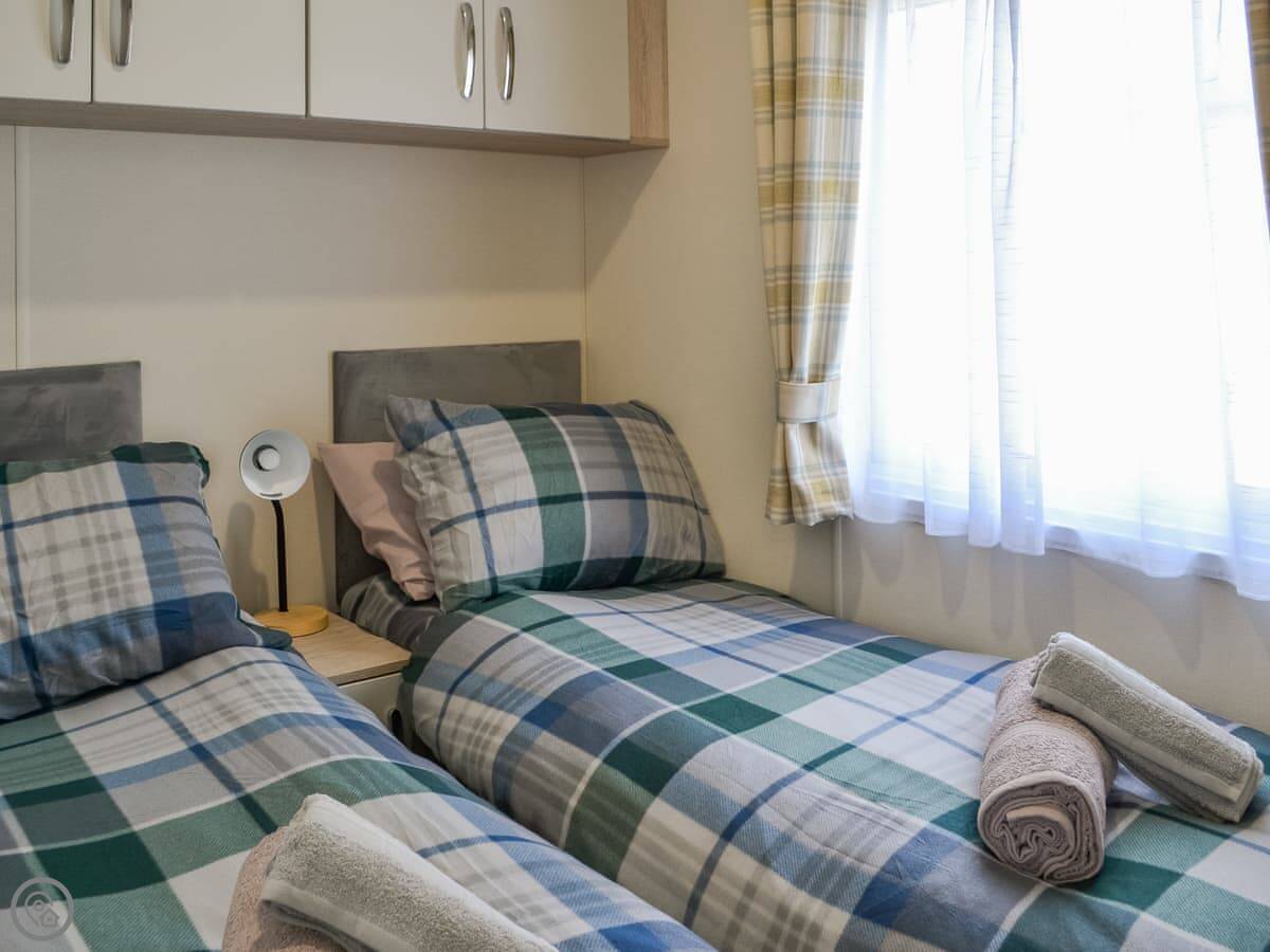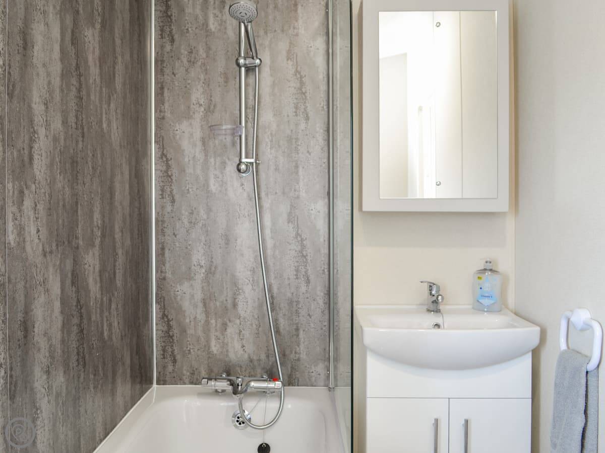 It sleeps four. Two bedrooms, one's a double, one's got two singles. One bathroom, which has a bath with a shower over it. It's got a 3 Star rating. It's clean and everything works, but it's not luxurious.