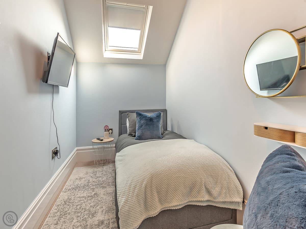 The Trinitys is on Trinity Road, in Bridlington. It's a big terraced house that sleeps up to eleven people. There are six bedrooms and one main bathroom, plus a toilet downstairs.