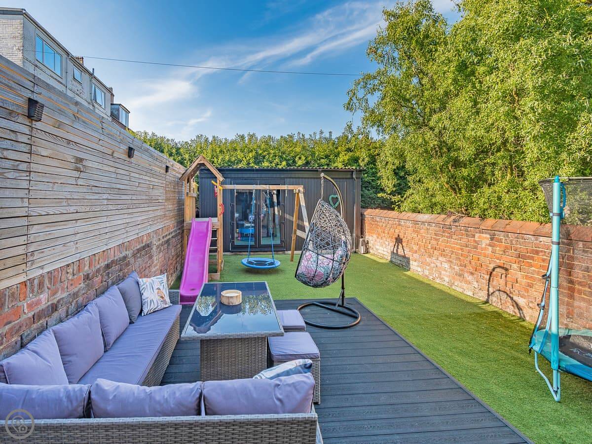 You get off-road parking for one, maybe two cars if you're careful. The back garden is fully enclosed with a decked area and artificial grass. It's private.