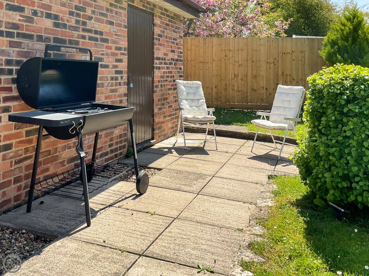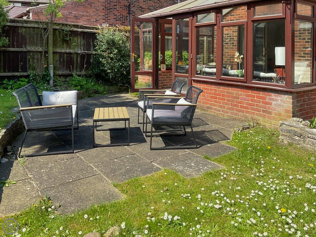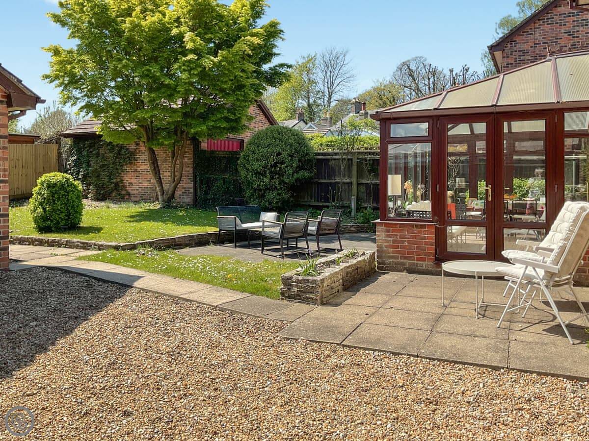 Kastania is a detached house on a quiet road in Bere Regis. It's got a driveway for two cars, and an electric vehicle charger. The garden is fully enclosed and private, with a patio area and a bit of lawn. There are a couple of mature trees at the bottom. It's not huge, but it's a nice, sheltered space.