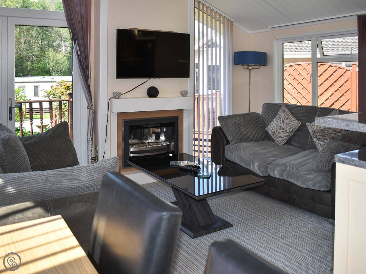 It's a lodge, so it's all on one level. Two bedrooms, two bathrooms. Sleeps four. There's a king size with its own shower room, and a twin room. It's got a 3 Star rating. It's clean, modern, and does the job.