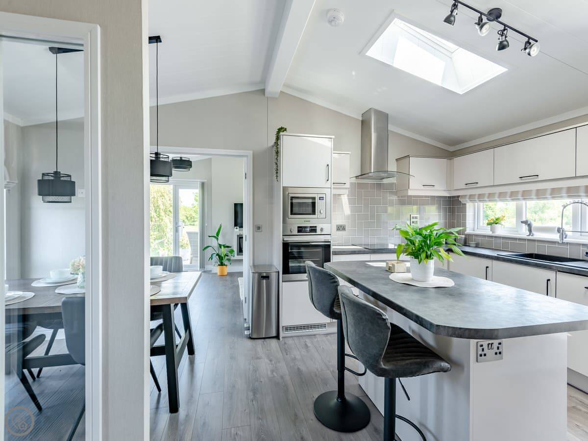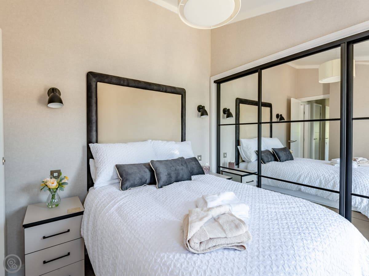 It sleeps four in two bedrooms, both have king-size beds. There are two bathrooms, one with a bath and one with a walk-in shower. It's a 4 Star property, so everything is in good order and clean. It feels new.