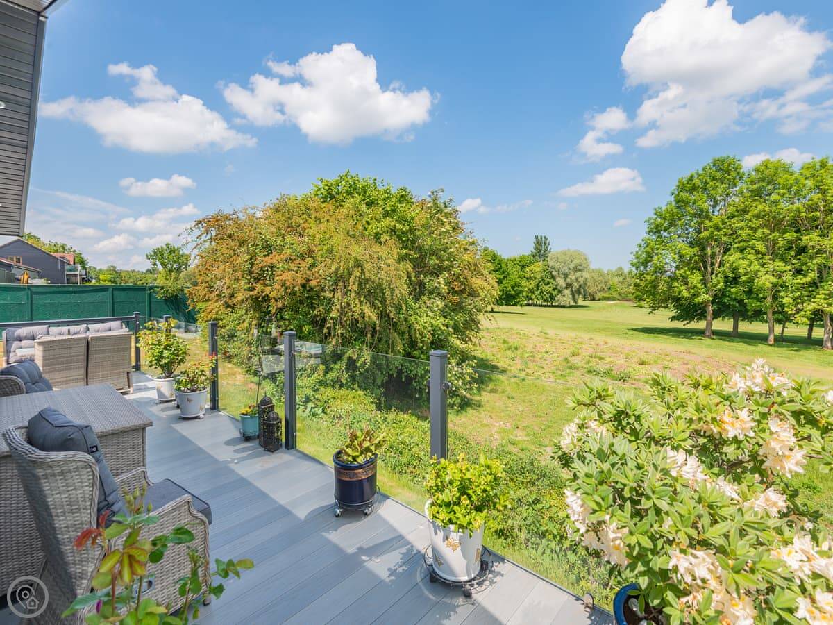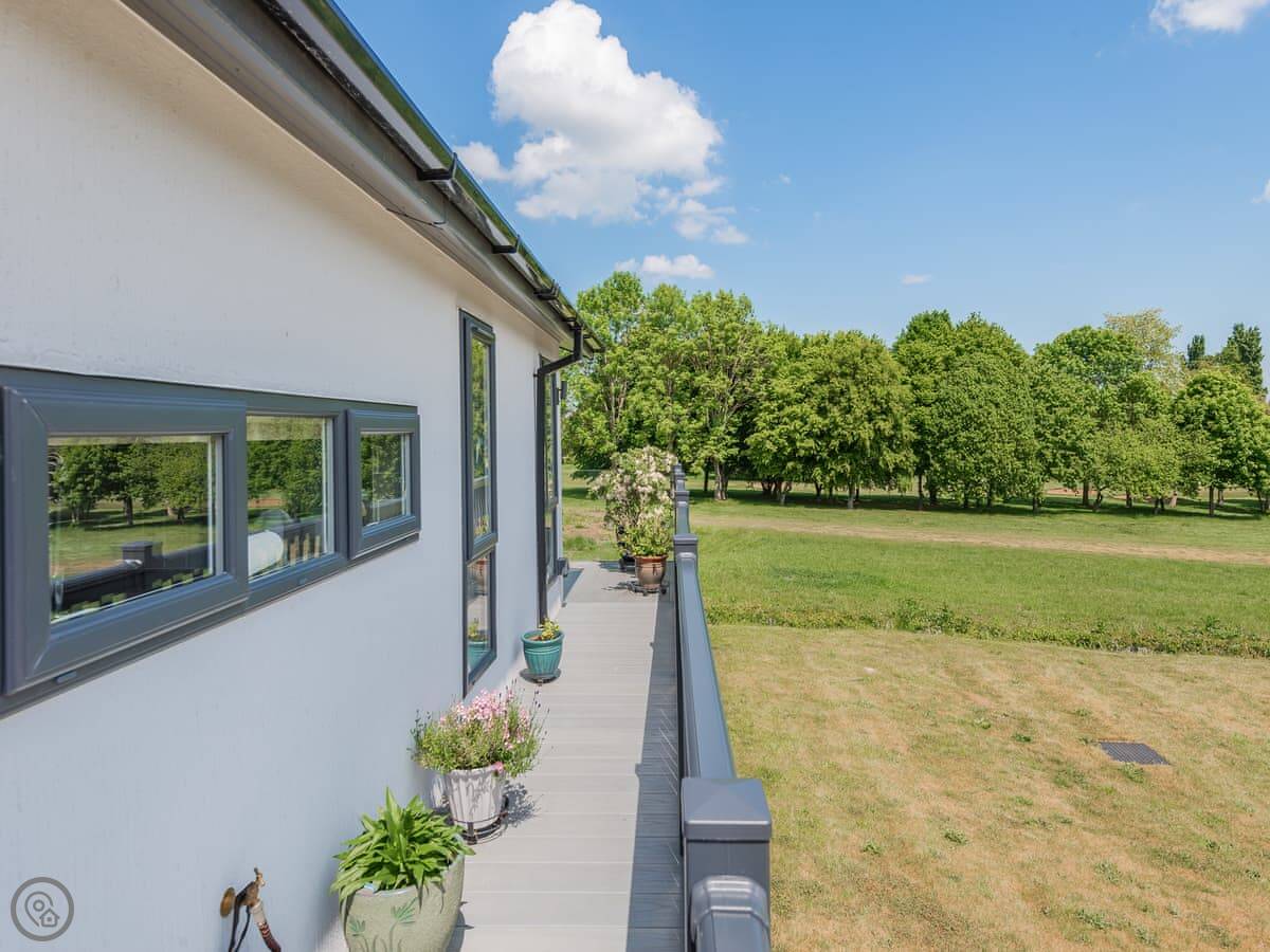 Sunnyfields is a lodge on the grounds of Cambridge Golf Club, in Bourn. It's detached, so you're on your own. The outlook is over the fairways and fields.
