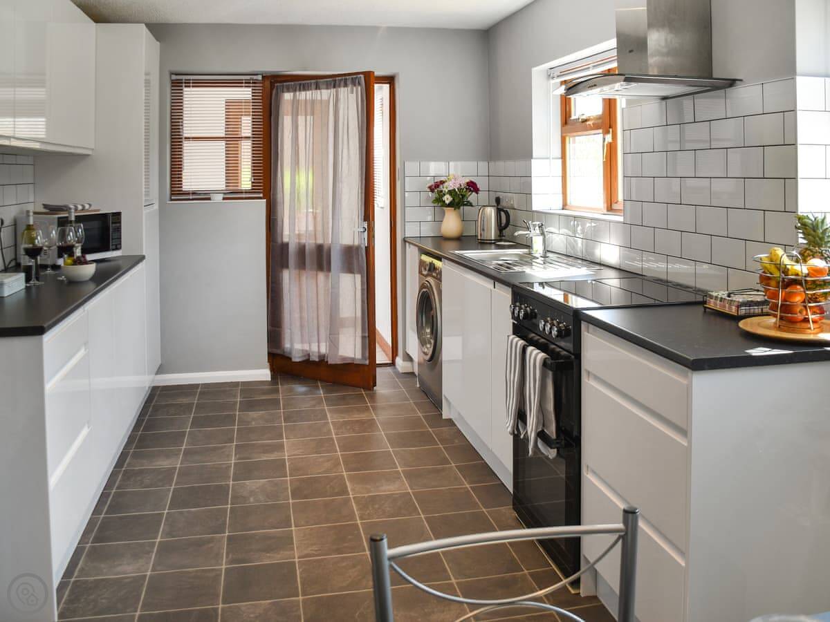 It sleeps five in two bedrooms, with one bathroom. Everything's on one level, so there are no stairs at all. It's got a 4 Star rating, which means it's comfortable and well-equipped.
