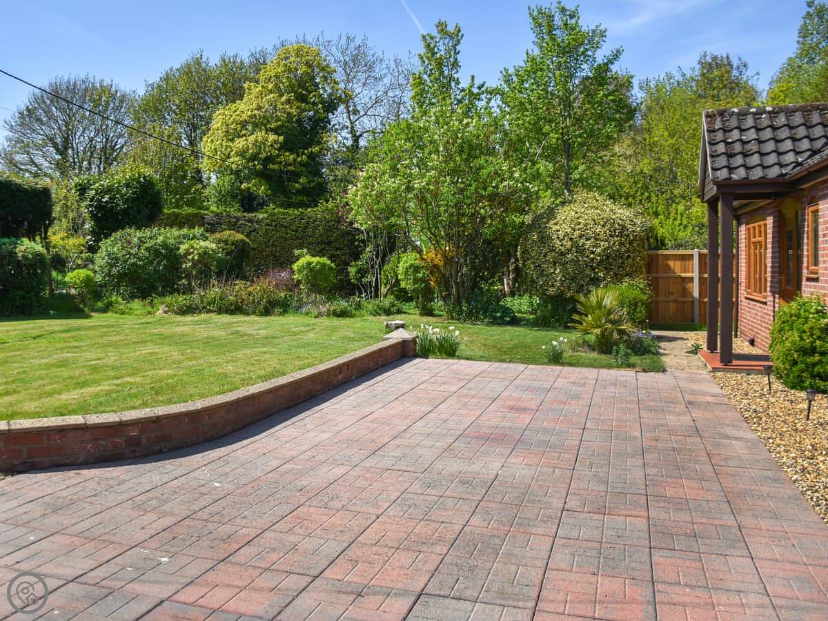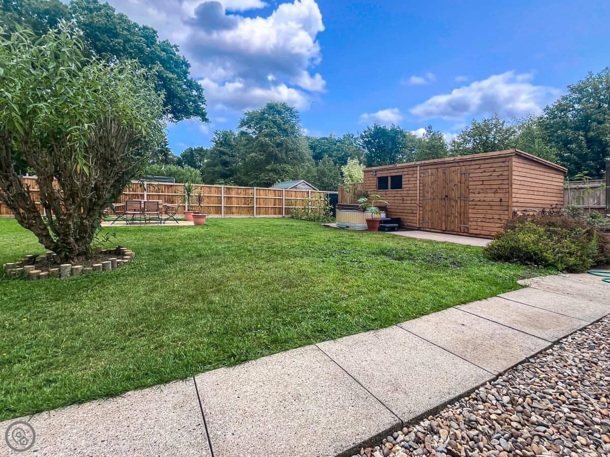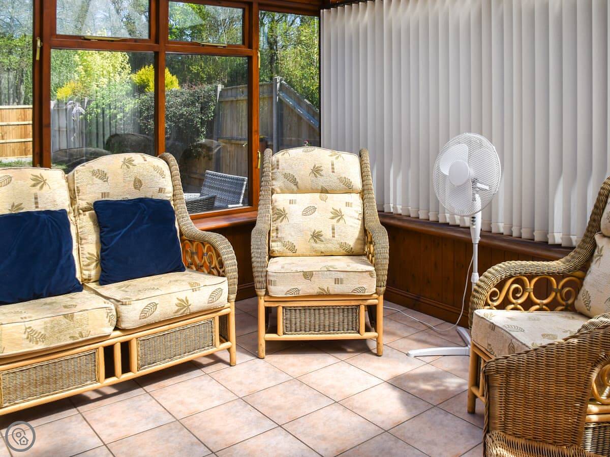 The garden goes all the way around. It's enclosed, so it's safe for kids or a dog. There's a hot tub out there, which is private to the property. Inside, there's a conservatory that gets the sun.