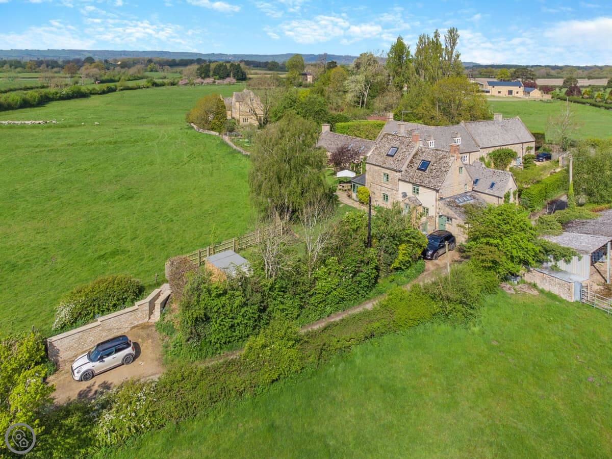 Location wise, it's very quiet. You can walk straight out onto footpaths. Chastleton House is literally just down the lane, it's a National Trust place. Moreton-in-Marsh is the nearest proper town, about four miles away. They've got a train station, shops, and a Tuesday market.