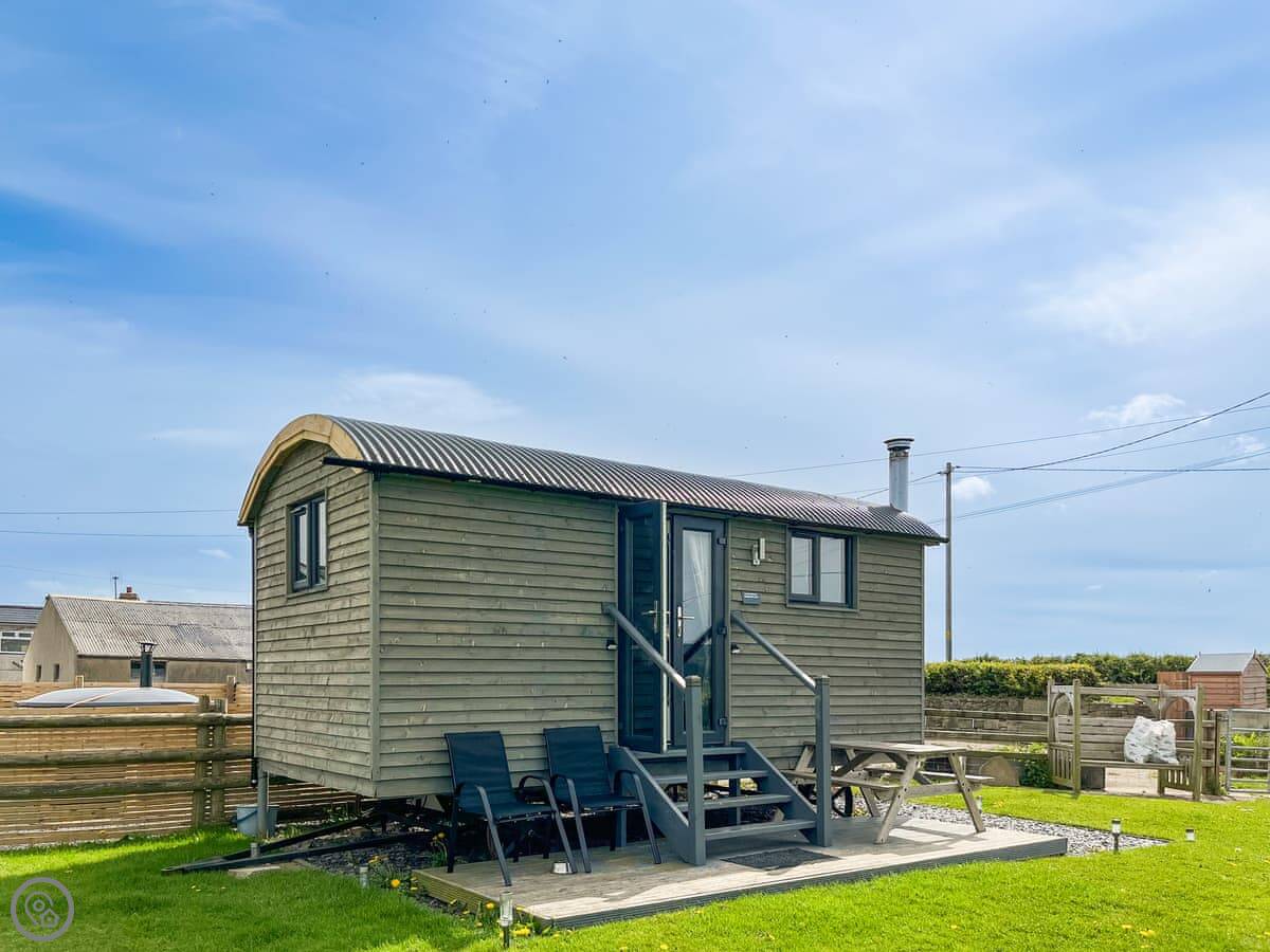 Cwtch Winnie is a modern shepherd's hut. It's in a field on our farm, near the village of Llysfaen, a few miles inland from Colwyn Bay.