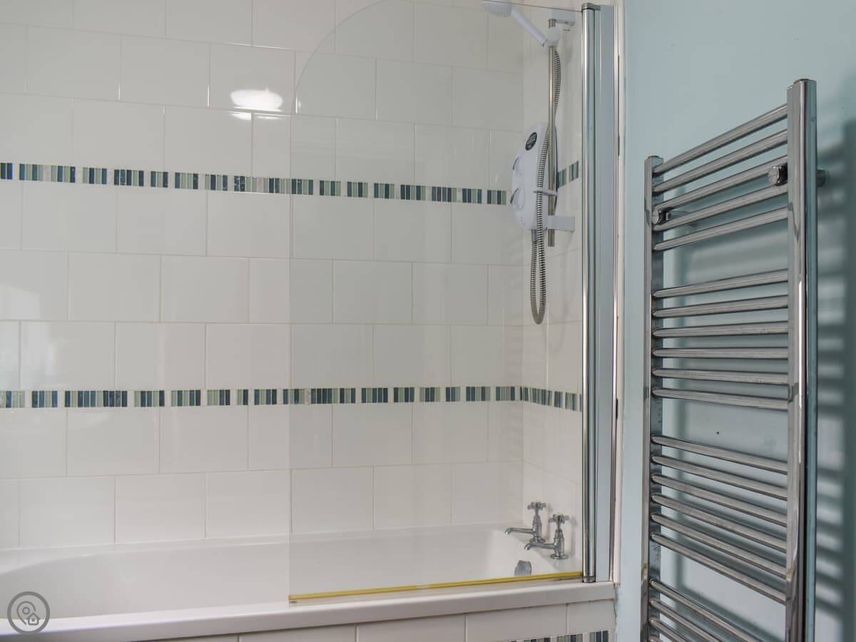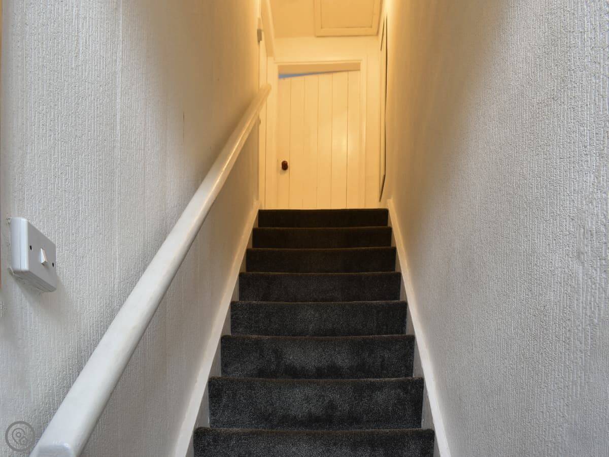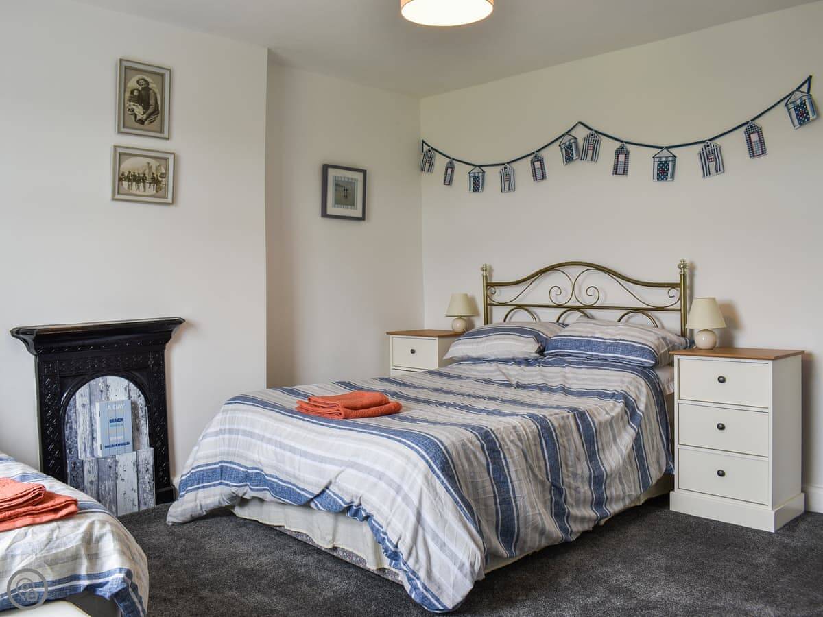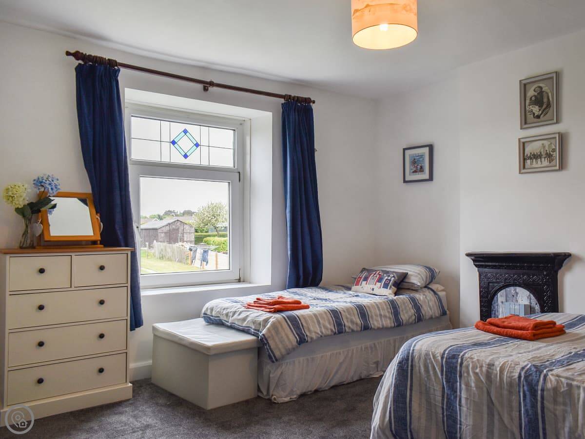 It sleeps five. There are two bedrooms upstairs and a bathroom downstairs. One bedroom has a double bed and a proper view out to sea. The other one has a double and a single bed in it, which is useful. It's got a 3 Star rating.