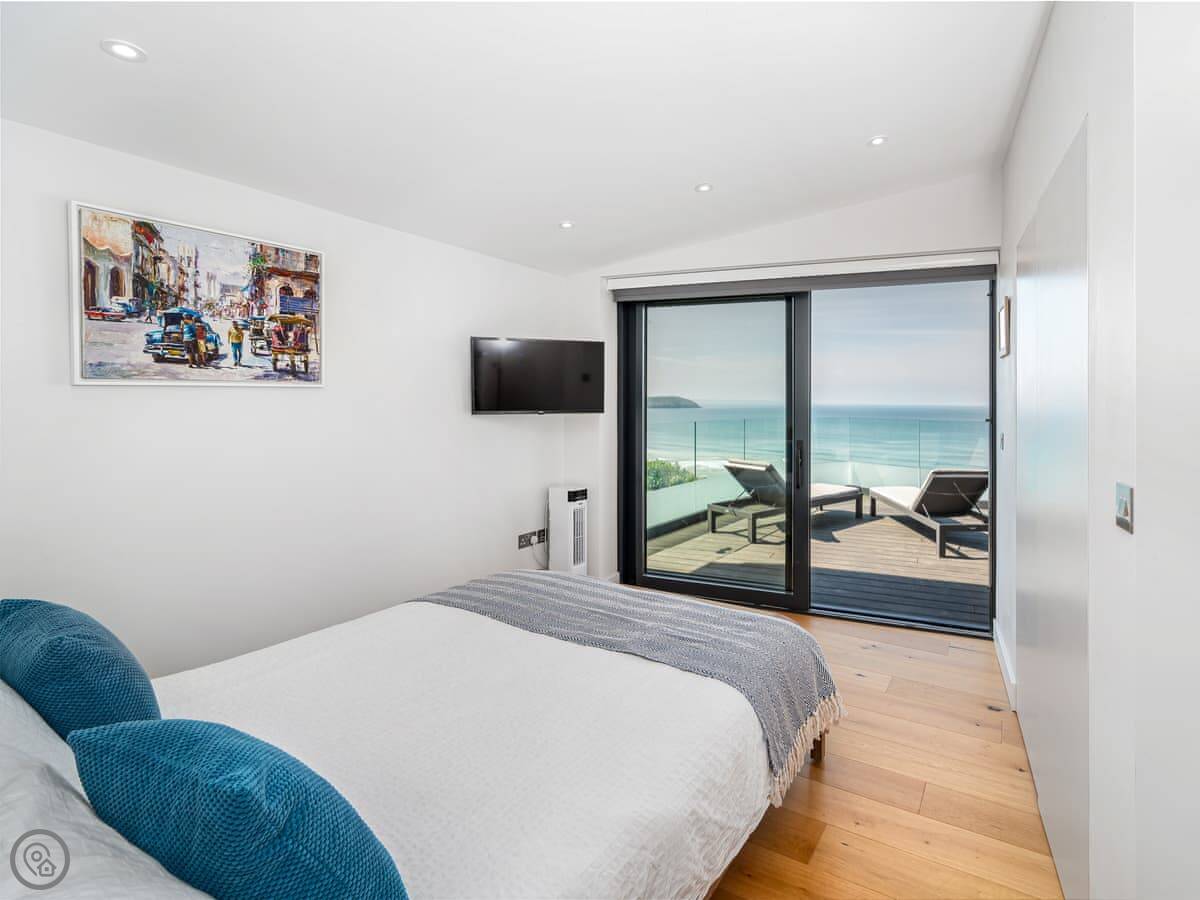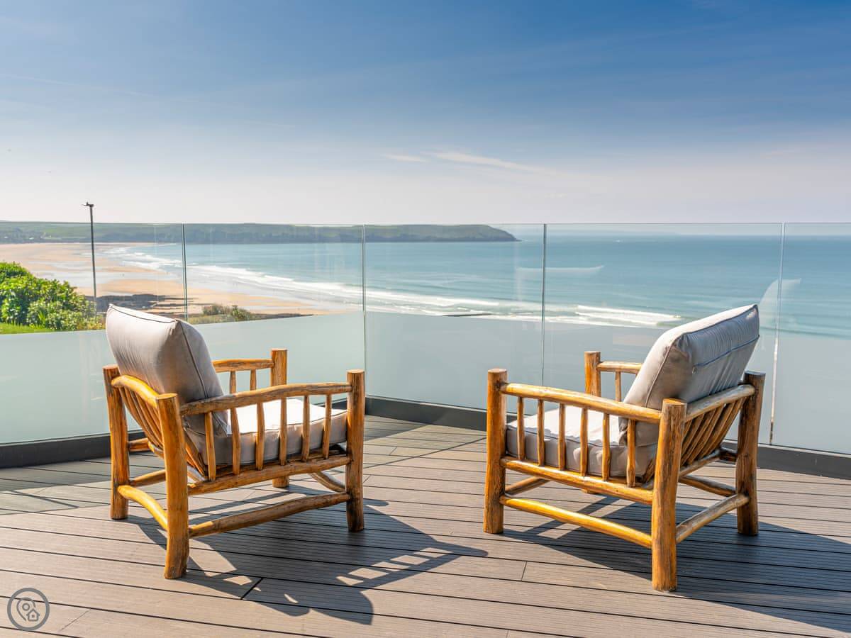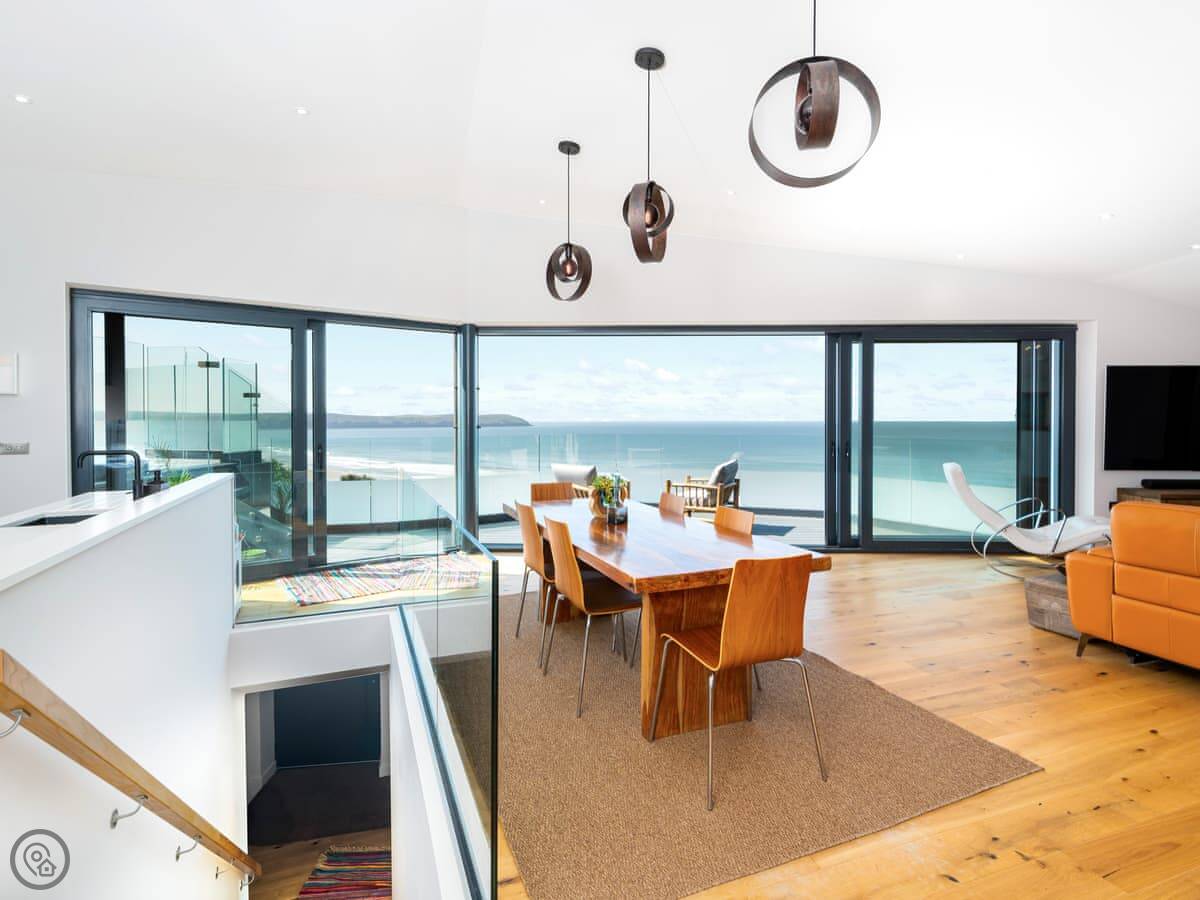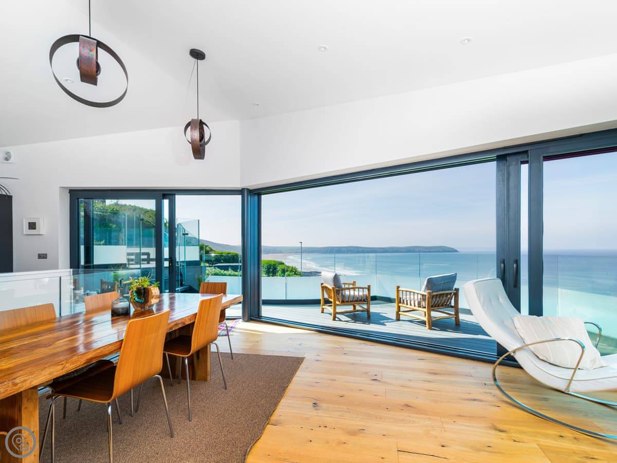 Cyan is in Woolacombe, up at the northern end of the village. It's a detached house built into the hill. The view is the big thing. It looks straight out to sea.