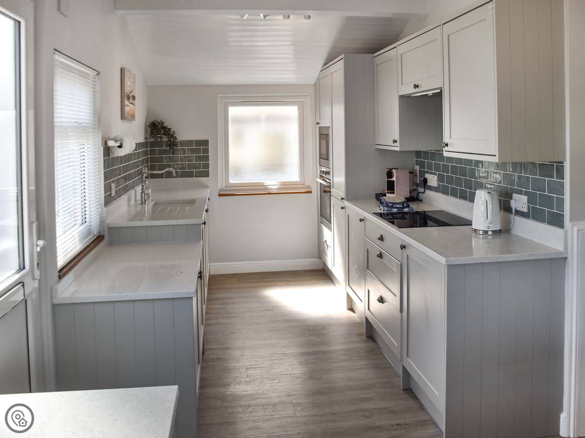You're forty yards from the beach. That's not an exaggeration, it's basically over the road. A proper sandy beach. The village is about ten minutes walk. There's a shop, a takeaway, and a couple of pubs that do food.