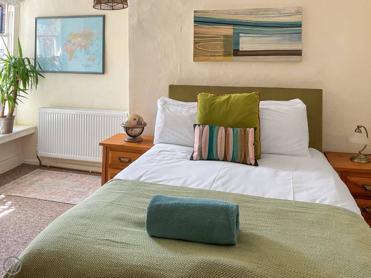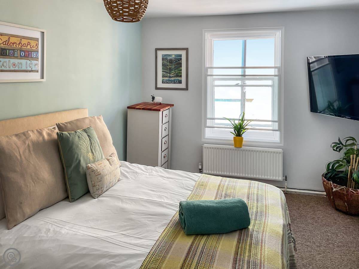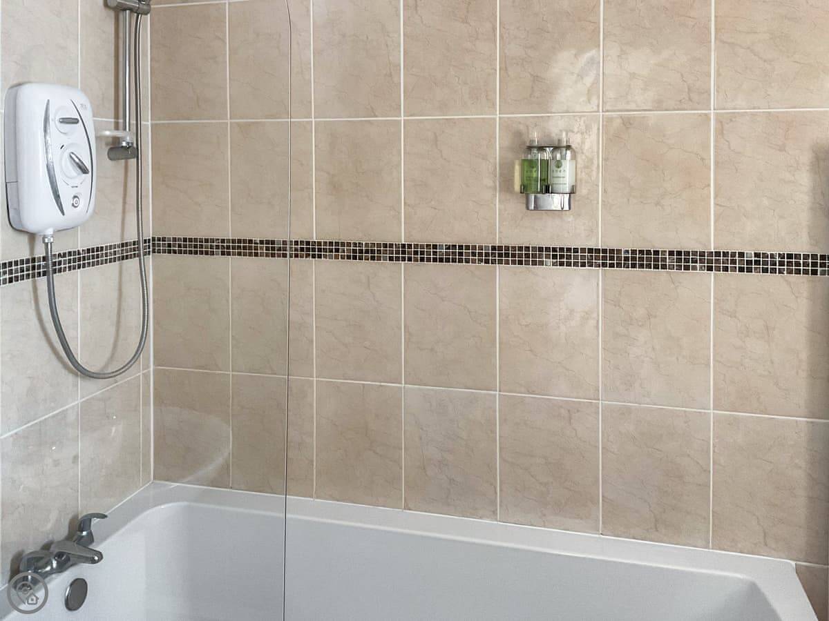 It sleeps six in three bedrooms. Two doubles, one super king. They all have a TV. There's one bathroom with a shower over the bath.