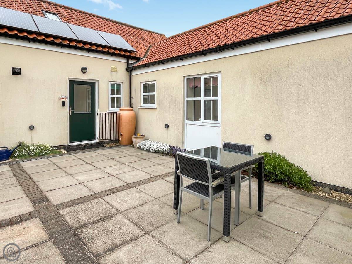 This is Maggie's Mews in Greetham, Lincolnshire. It's a semi-detached brick cottage. The view from the front is across fields. It's quiet.