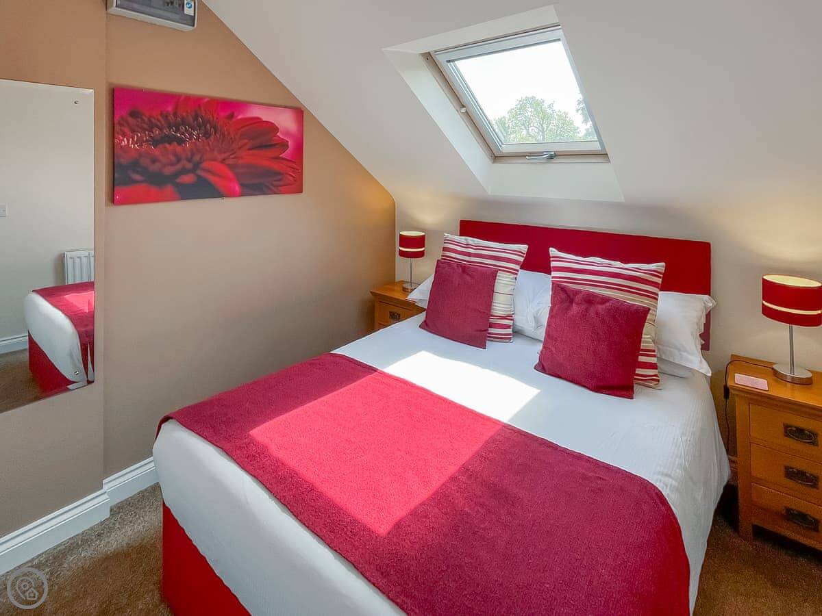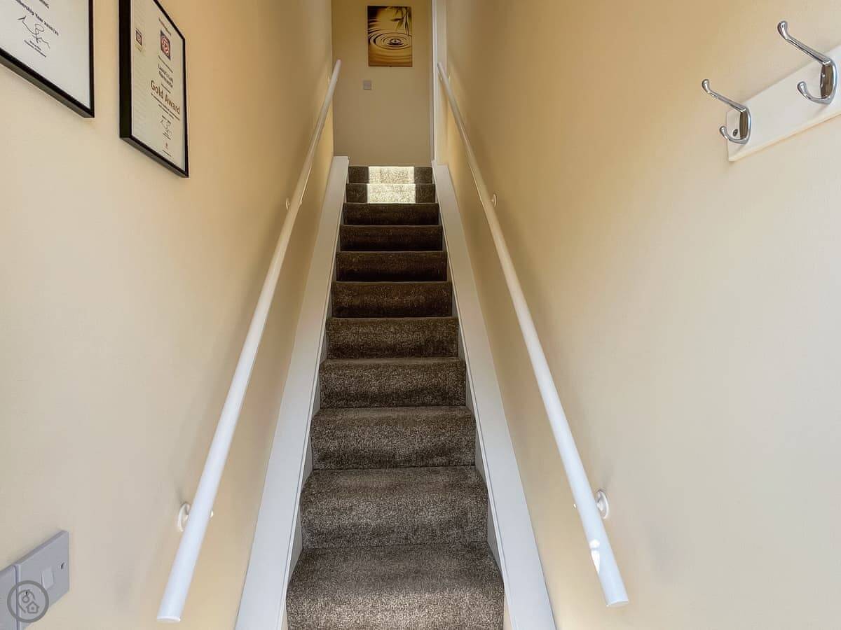 Laura’s Loft is a first-floor apartment attached to our house in Greetham. It’s for two people. One bedroom, one bathroom. It has its own front door, but you go up about 12 steps to get in.