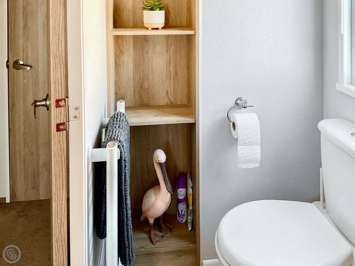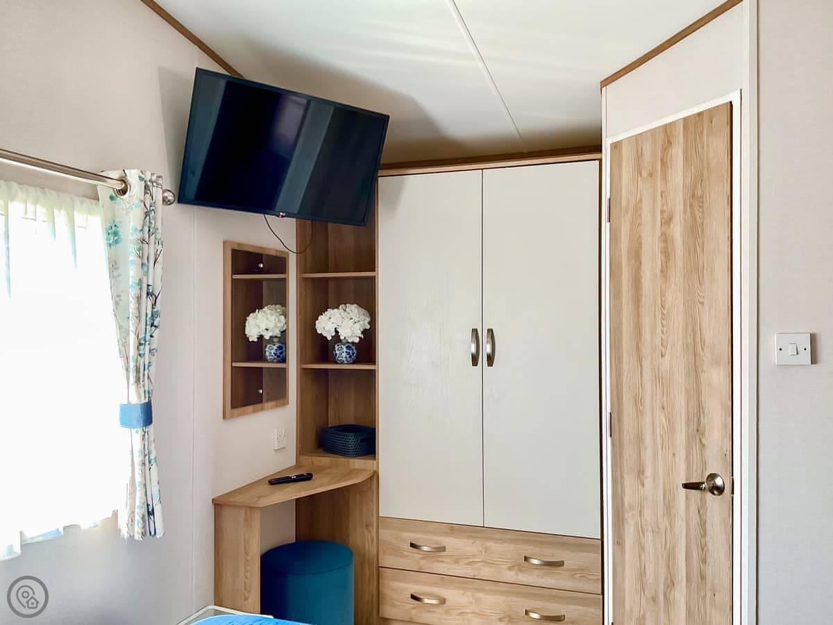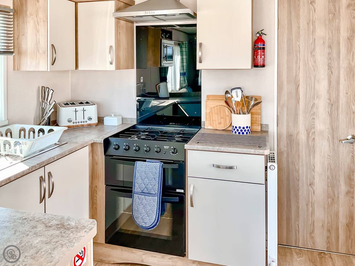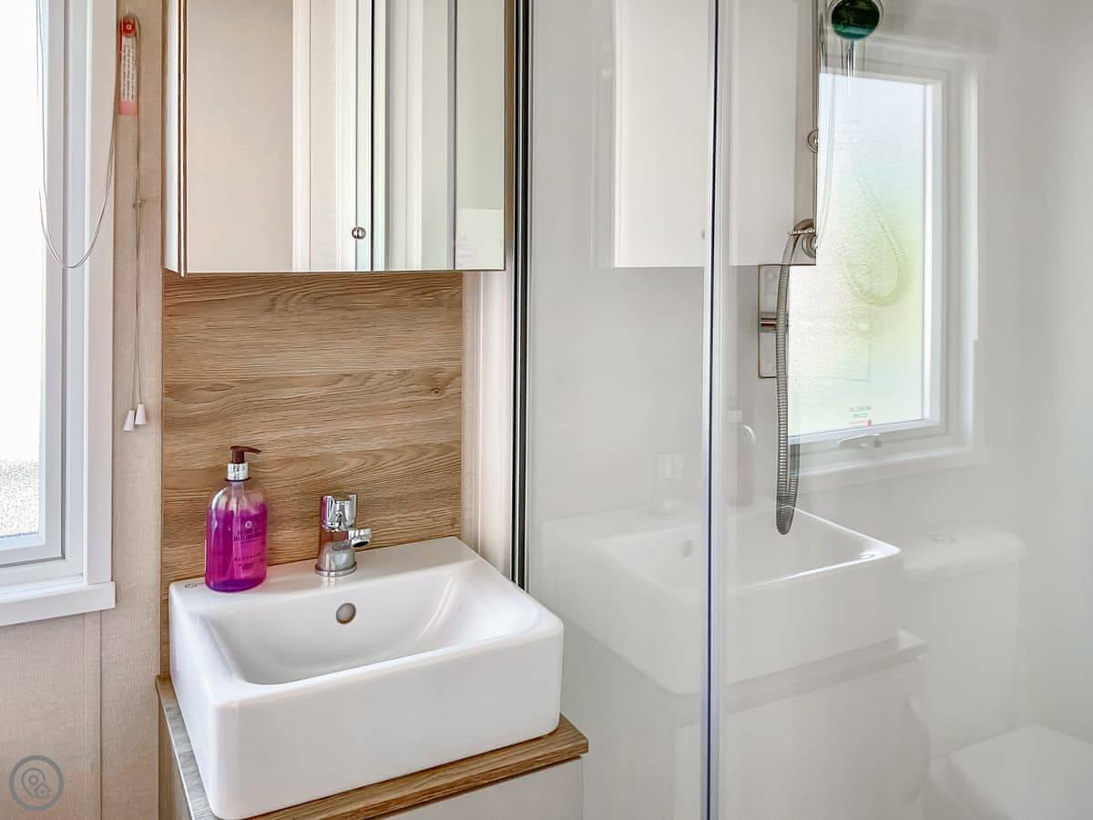 Seaside Jollys is a static holiday home on Hoburne Blue Anchor holiday park. It's modern, detached, and looks right out over the sea. You get the views but you're on a park, so it's not secluded.