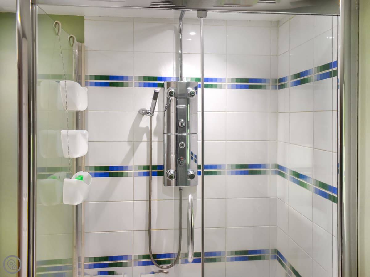 It sleeps six, with three bedrooms. Two bathrooms, one's an en-suite. It’s a 4 Star rating, so it's comfortable and has everything you need. The garden is enclosed, which is good if you have dogs. You can bring three.