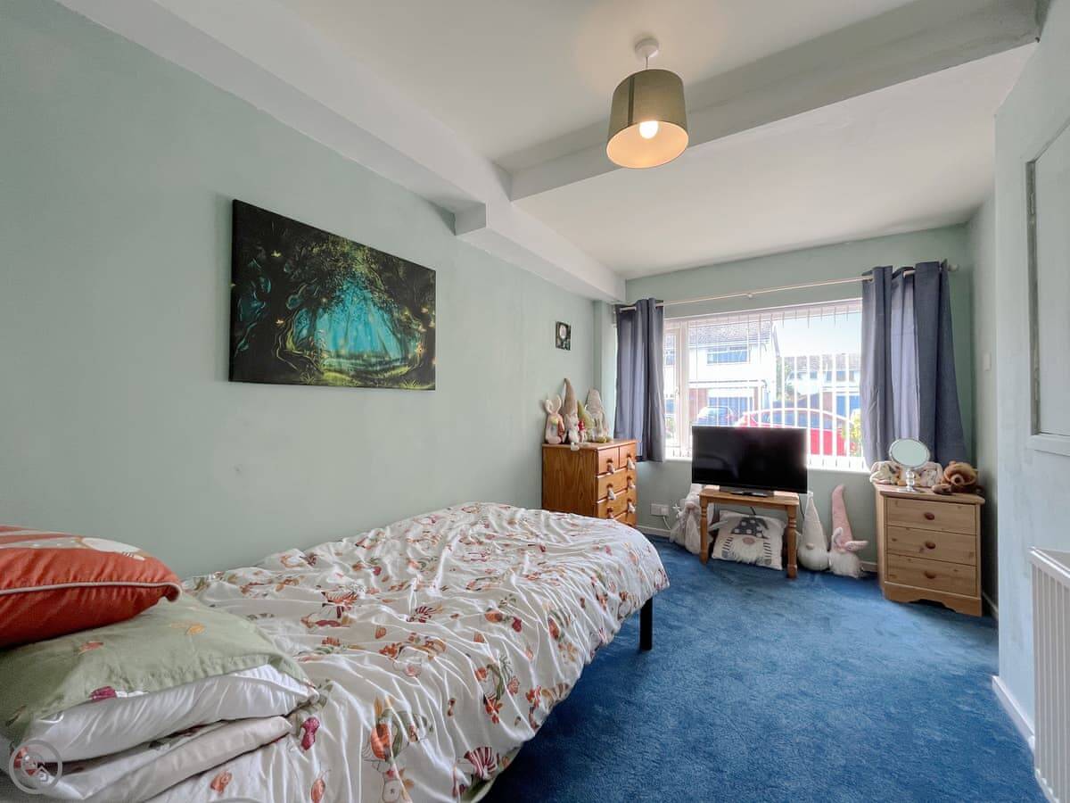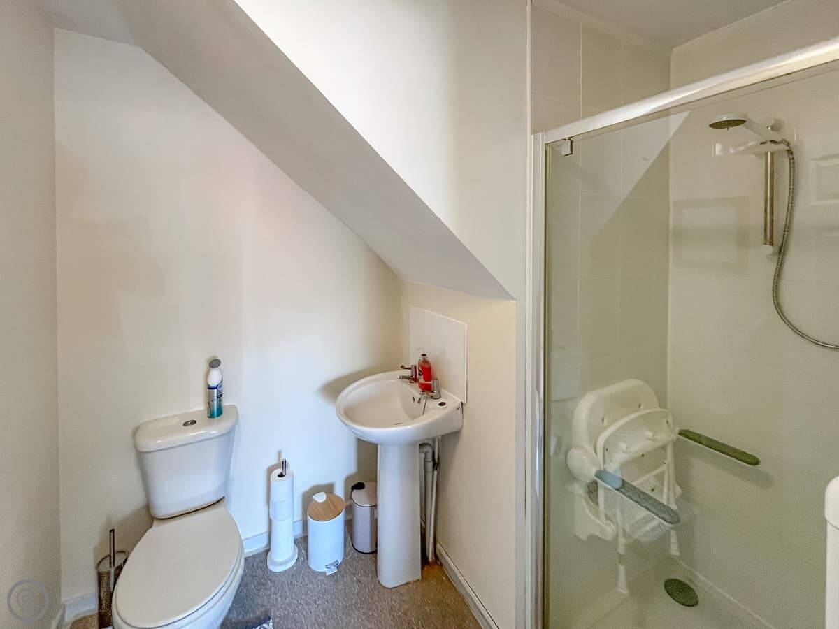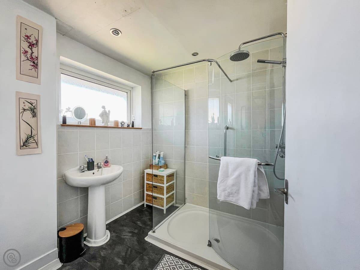 It sleeps six across four bedrooms. There’s one bedroom downstairs. It’s got its own ensuite bathroom with a shower seat fitted. That’s the main thing. Upstairs, there are three more bedrooms. One of the doubles has a small balcony. Two bathrooms in total.