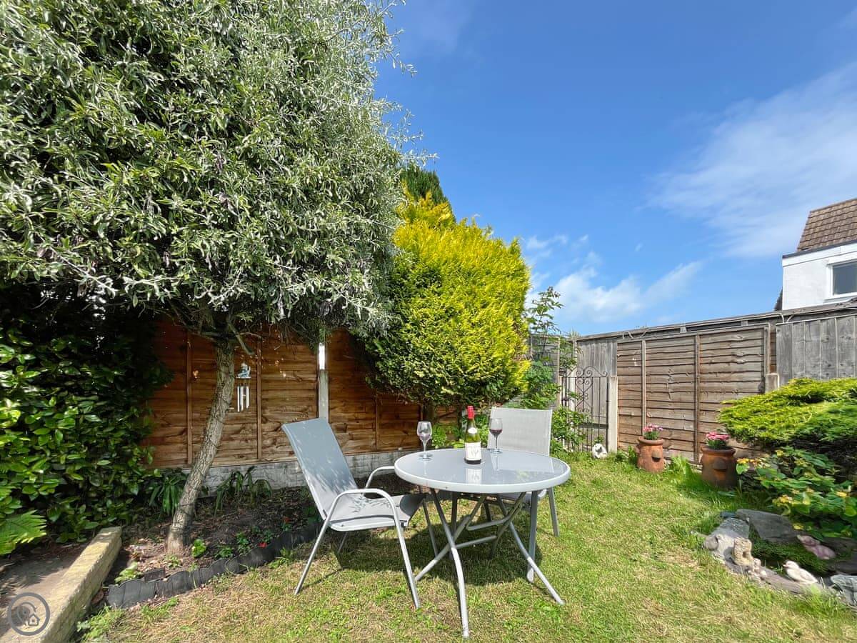 The garden is enclosed. There’s outdoor seating. Parking on the drive for two cars.