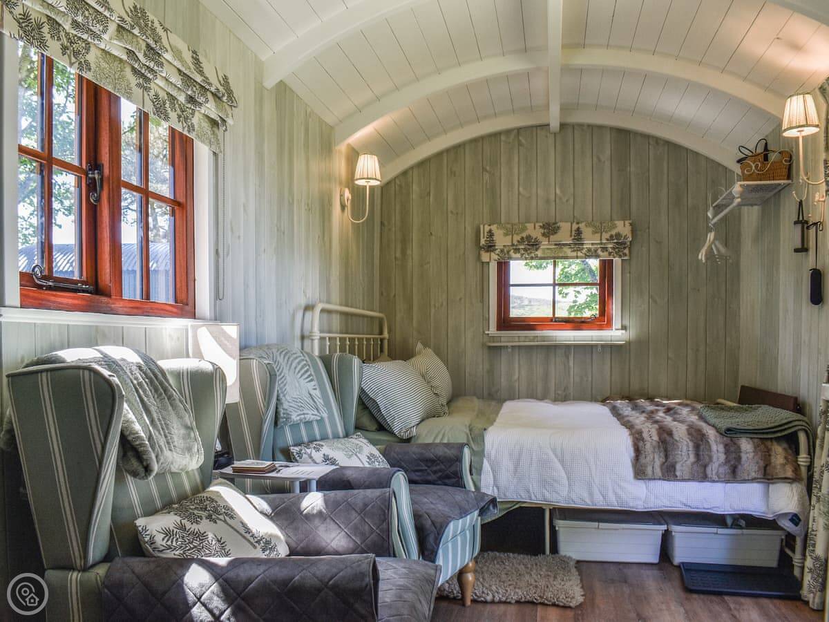 Tawny Owl Hut is one of our shepherd's huts at Hollins Farm in Westerdale. It's a single hut on its own, so it's private. You're right in the North York Moors.