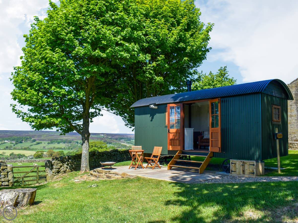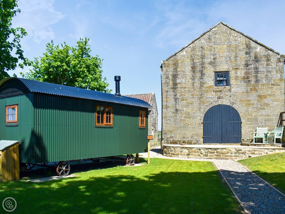 Barn Owl Hut is on Hollins Farm near Westerdale. It's a shepherd's hut, so it's one room with a bed, kitchen area and bathroom, all in a small, single-storey space. It sleeps two.