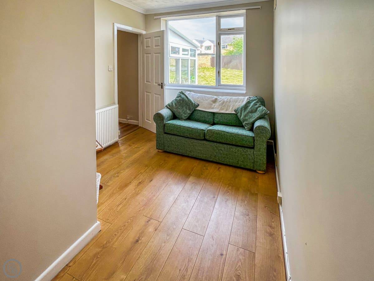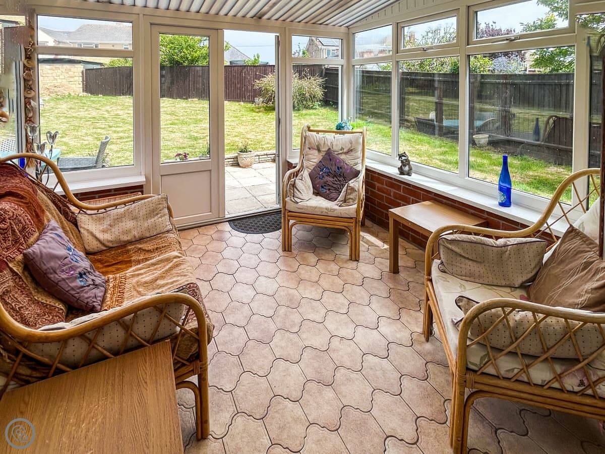Inside, there's a kitchen, a separate dining room, and a conservatory at the back. It's a bright room. You can sit there with a coffee in the morning.