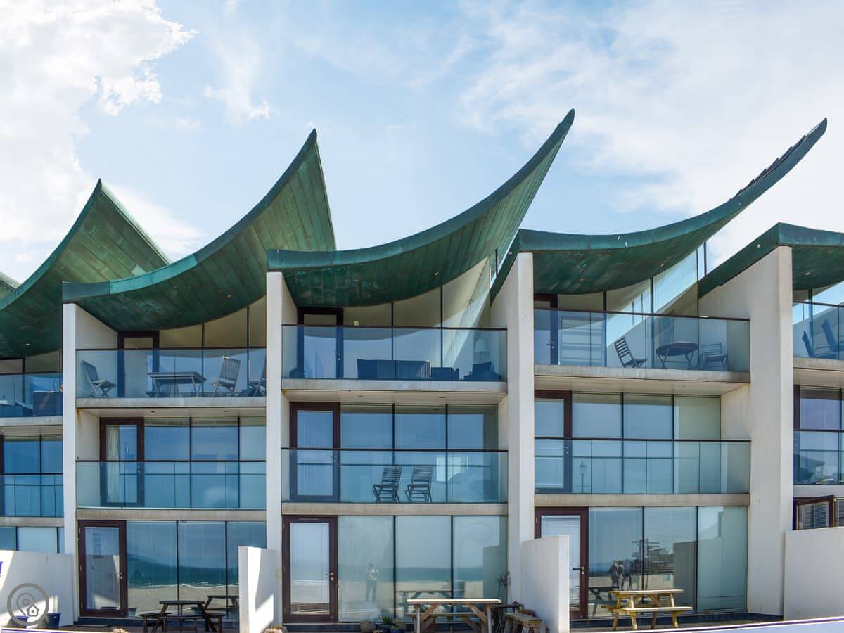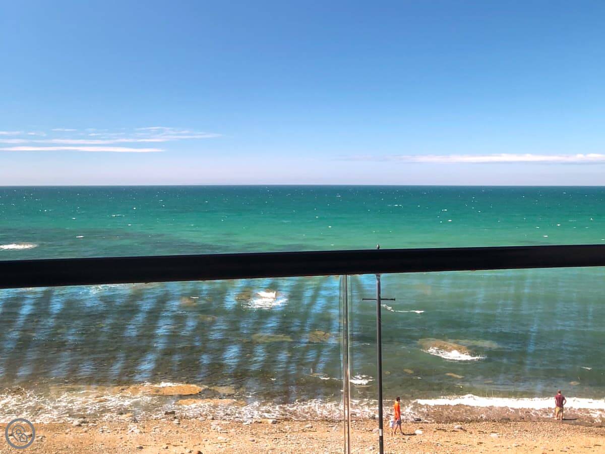 The main thing is the balconies. There are three. One of them has seating and looks straight out over the beach and the sea. That's the view you see in the photos.