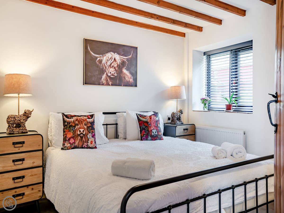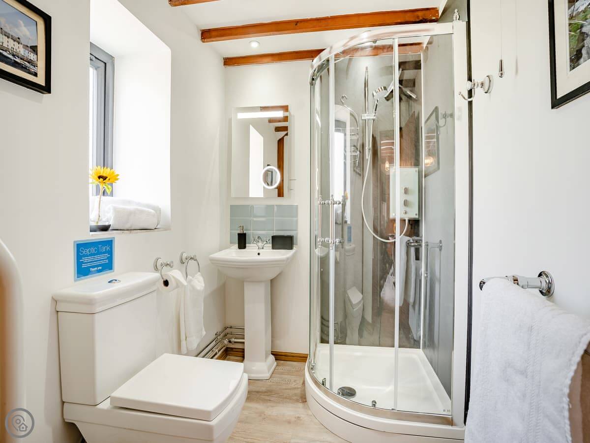 It sleeps four. Two bedrooms, one double and one twin, and a family bathroom with a shower. It's got a 5 Star rating, which means it's well finished and everything works as it should. There's underfloor heating downstairs.