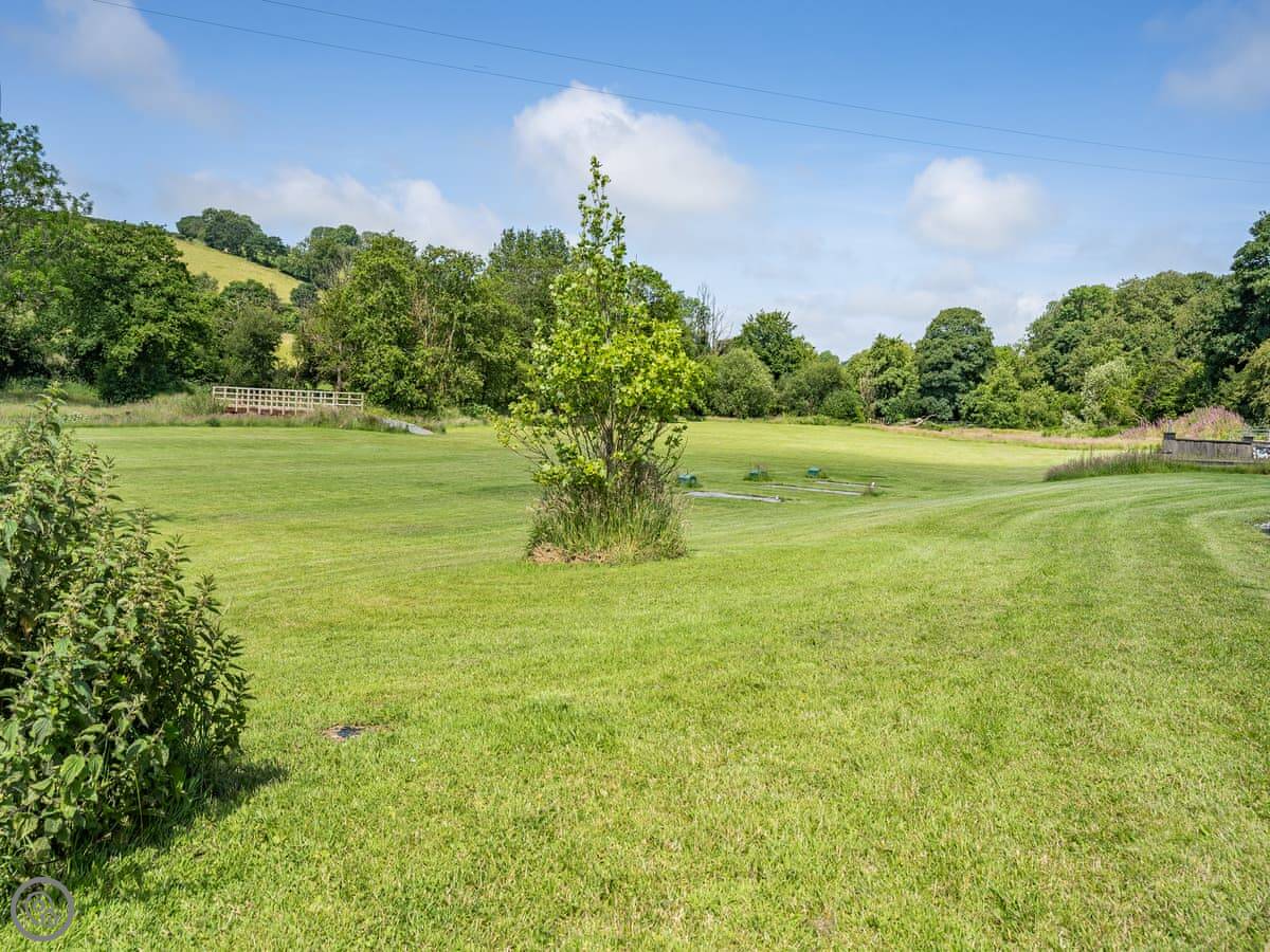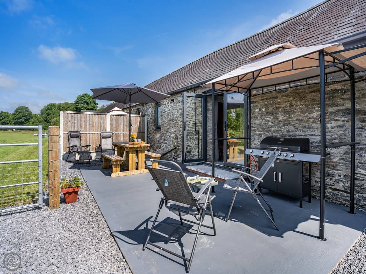 You get your own enclosed patio out the back with a table, chairs, and a gas barbecue. The shared grounds are about eight acres with a river running along the bottom. It's very quiet.