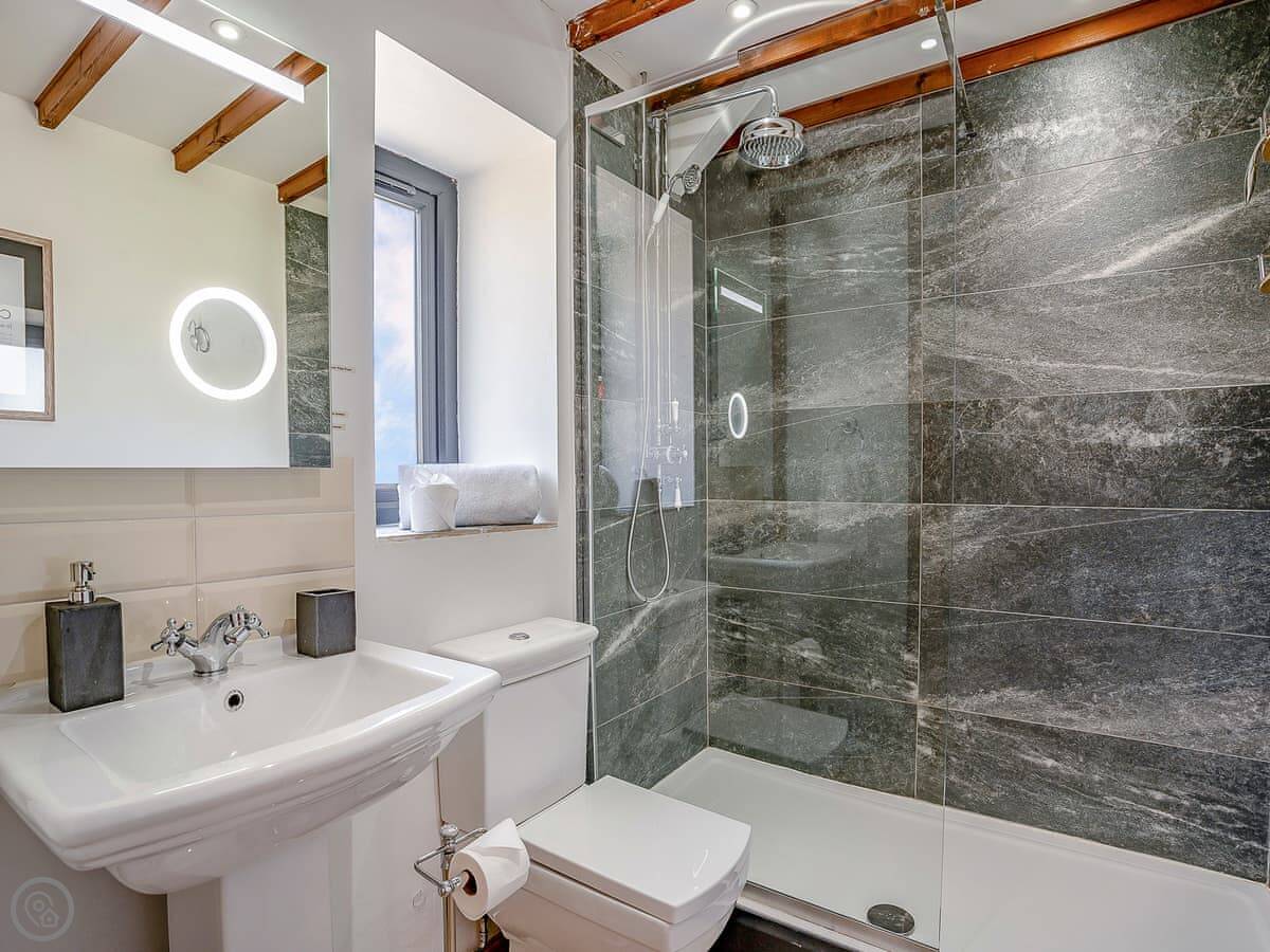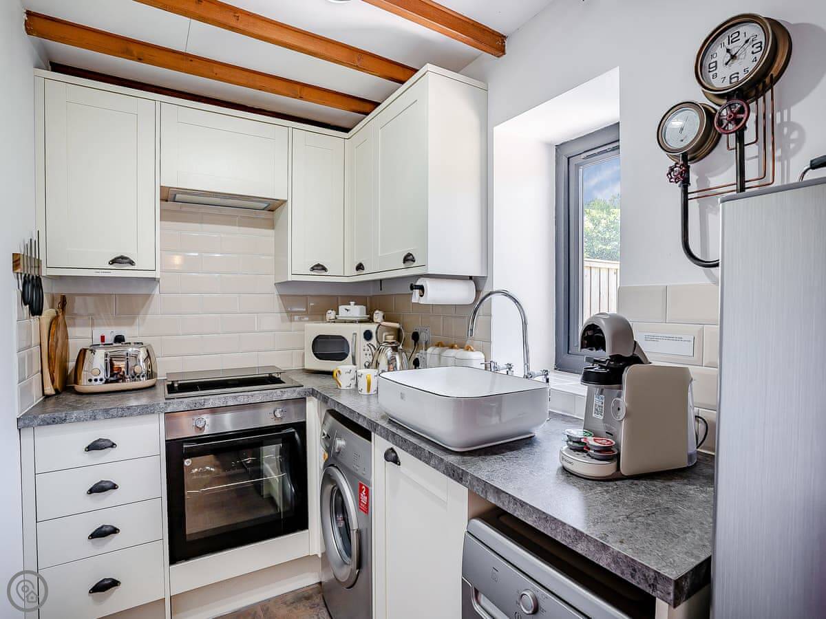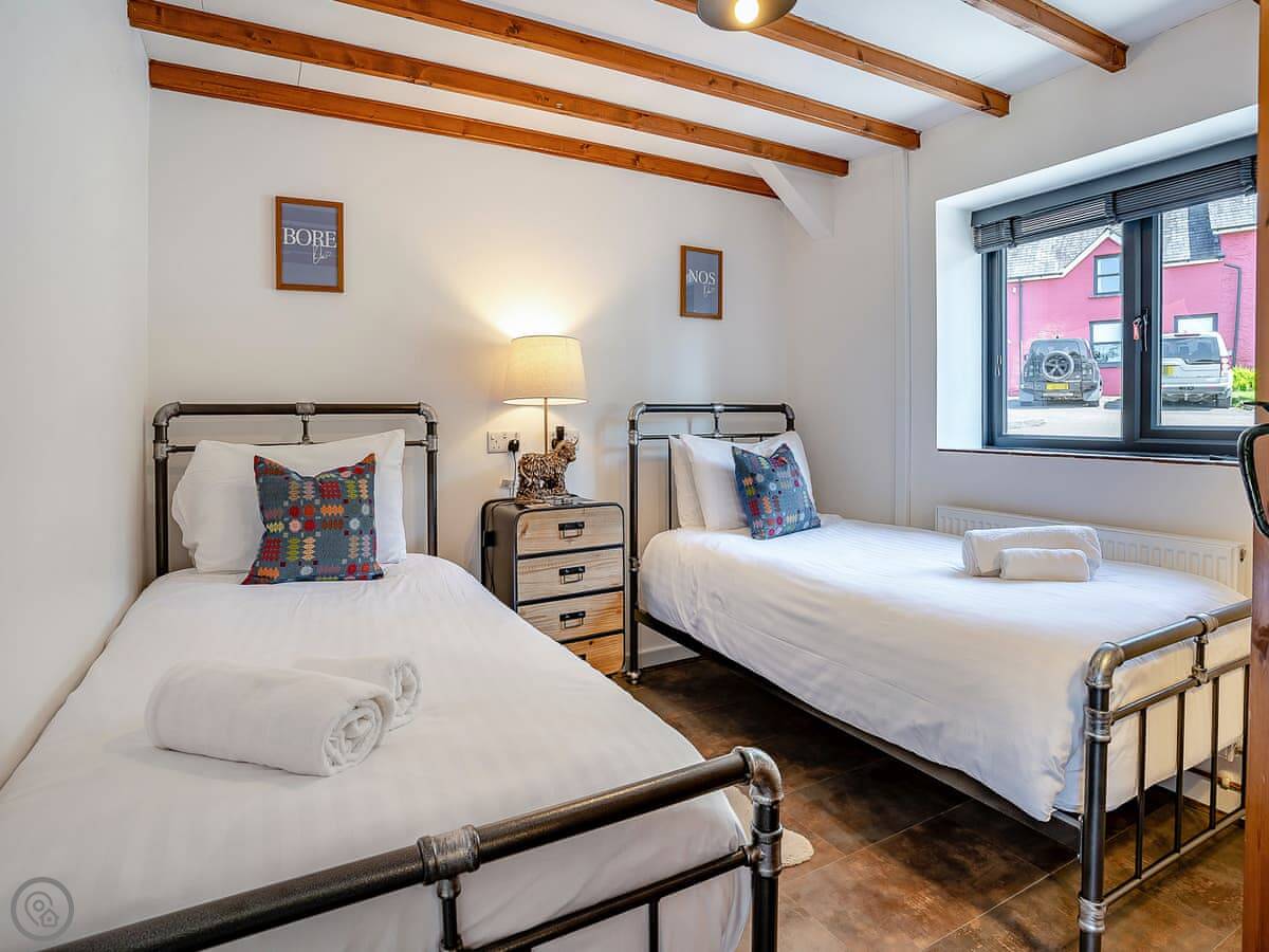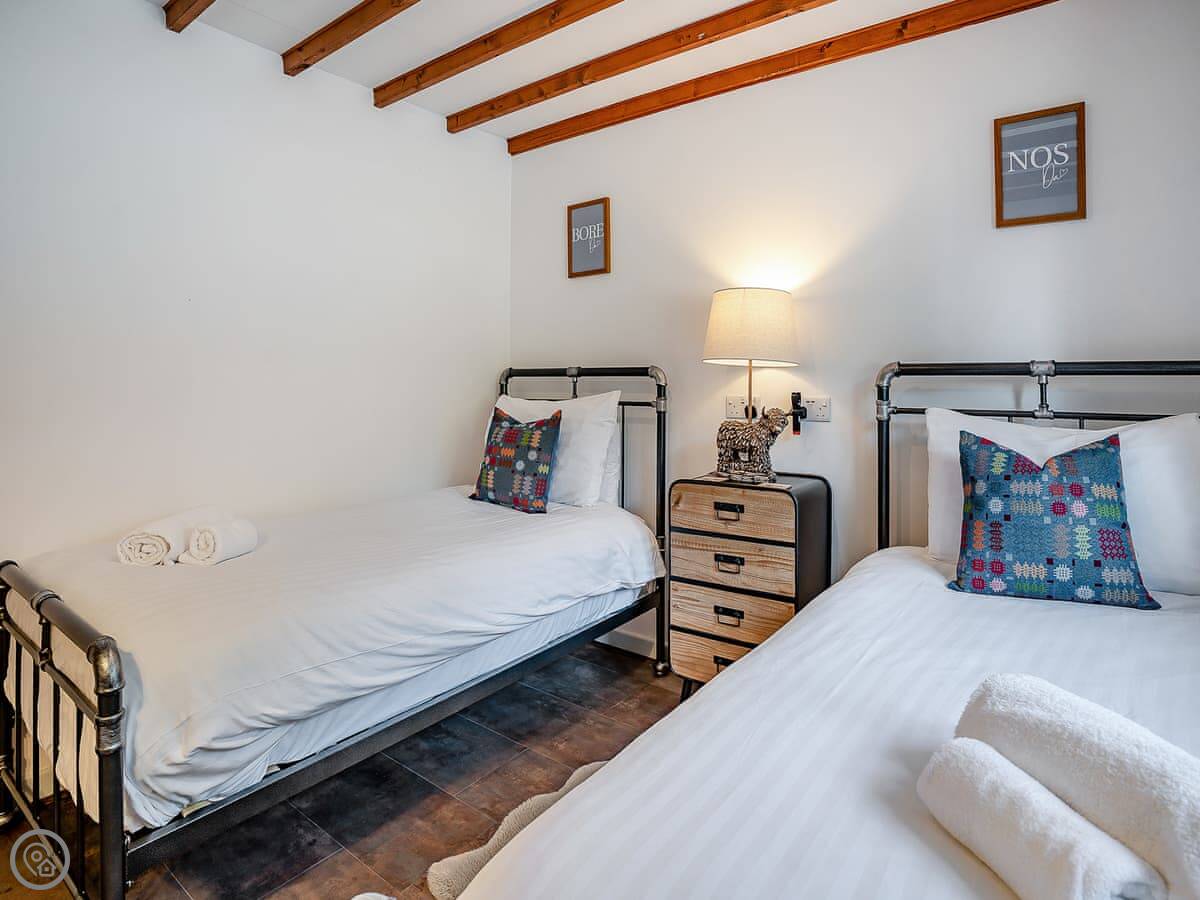 It sleeps four. Two bedrooms, one double and one twin. One bathroom with a shower. It's a 5 Star place, which means it's well put together and everything works. You've got a Smart TV, WiFi, a washing machine, and a dishwasher. Bedding and towels are included.