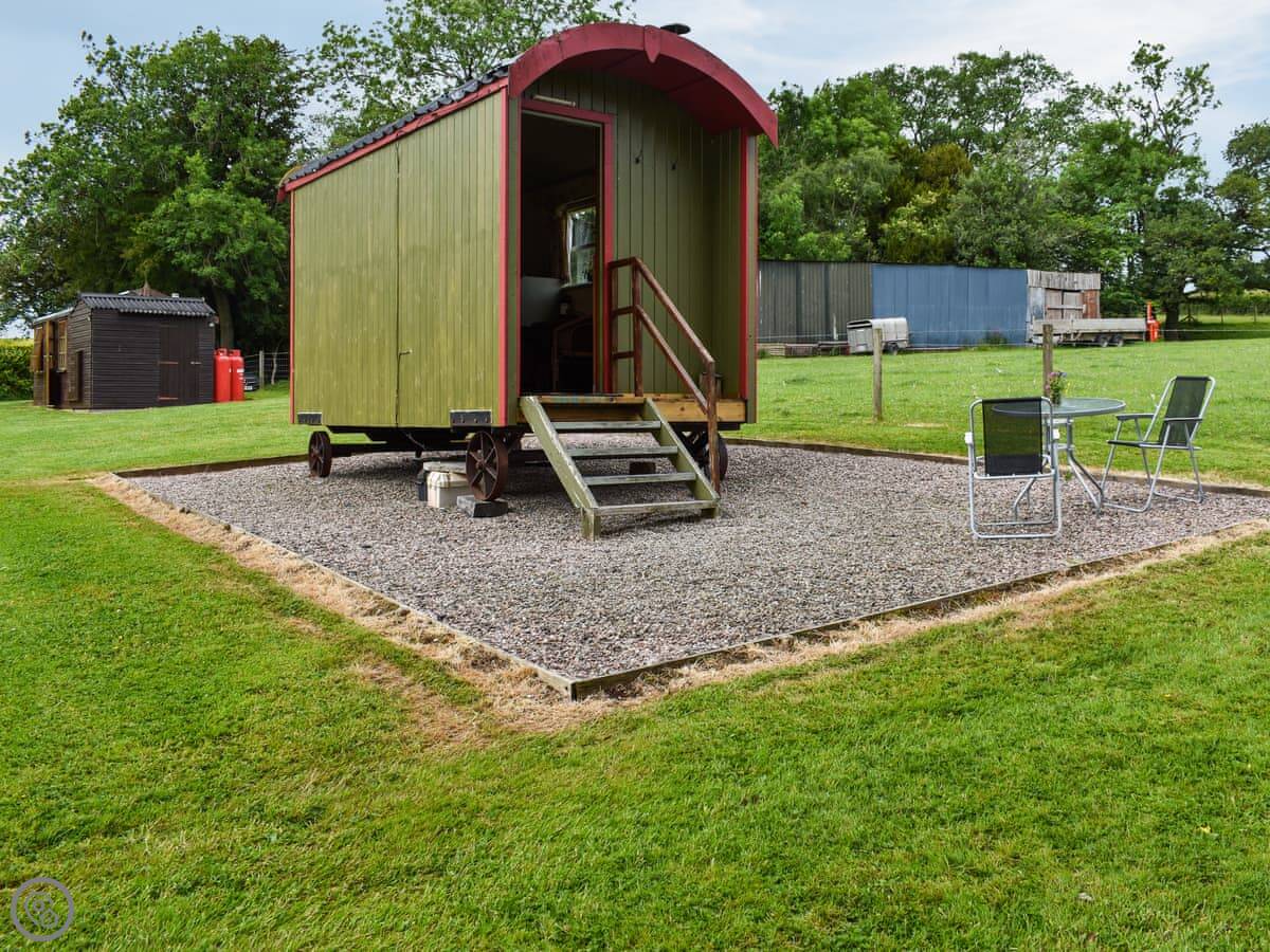 Sweet Briar is one of three shepherd's huts on our farm just outside Llangors. It's in a paddock, so it's quiet.