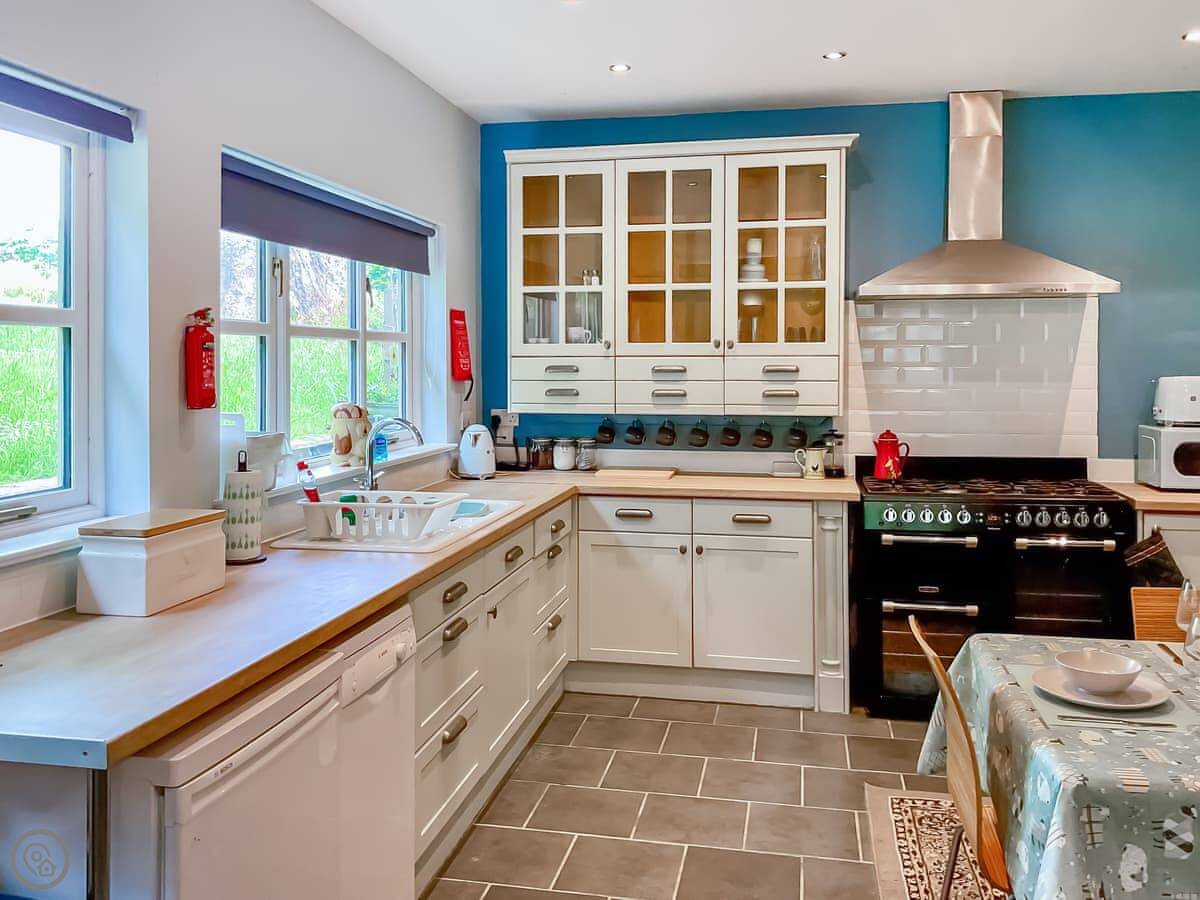 The cottage sleeps four. Two bedrooms, one bathroom. It's a 4 Star place, so it's got everything you need and is kept to a good standard. It's got beams and an open plan living and kitchen area. The kitchen is modern and has a dishwasher.