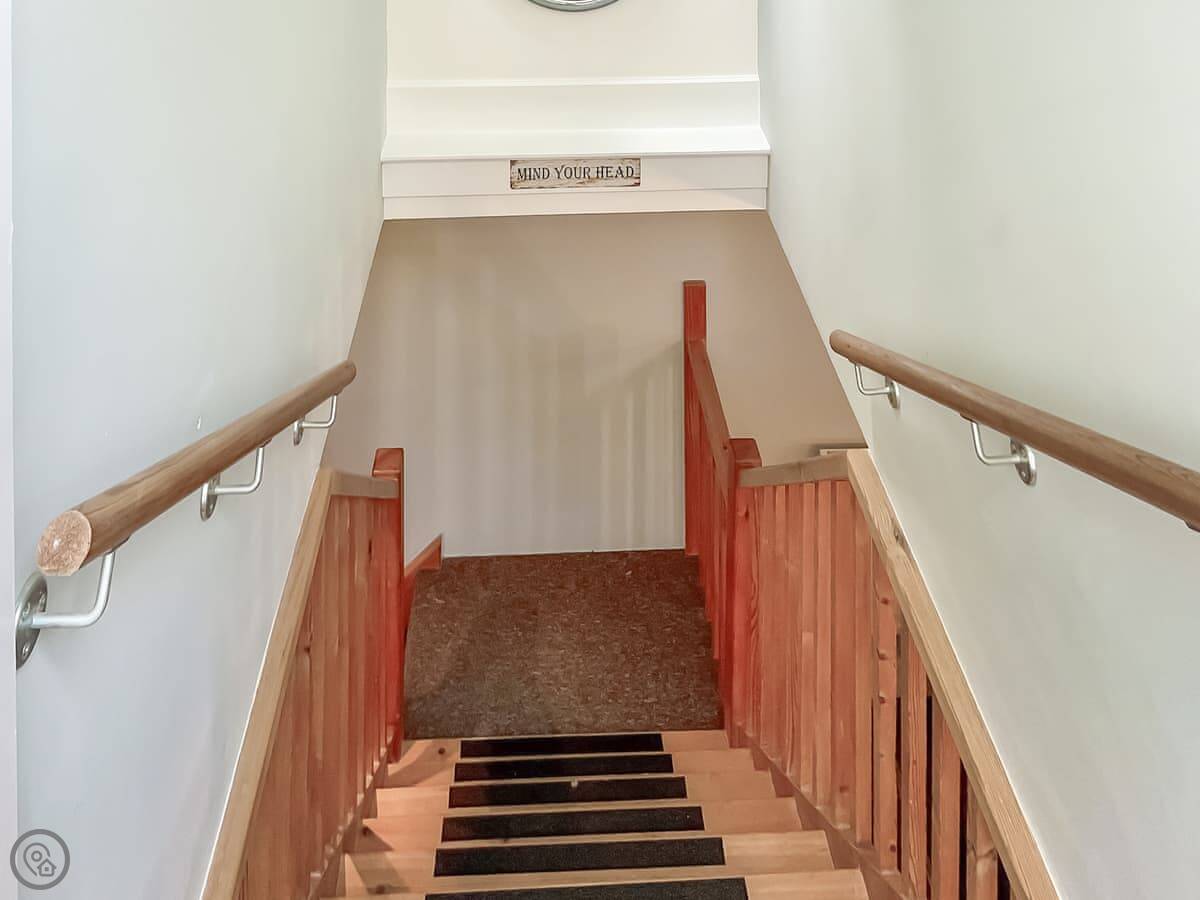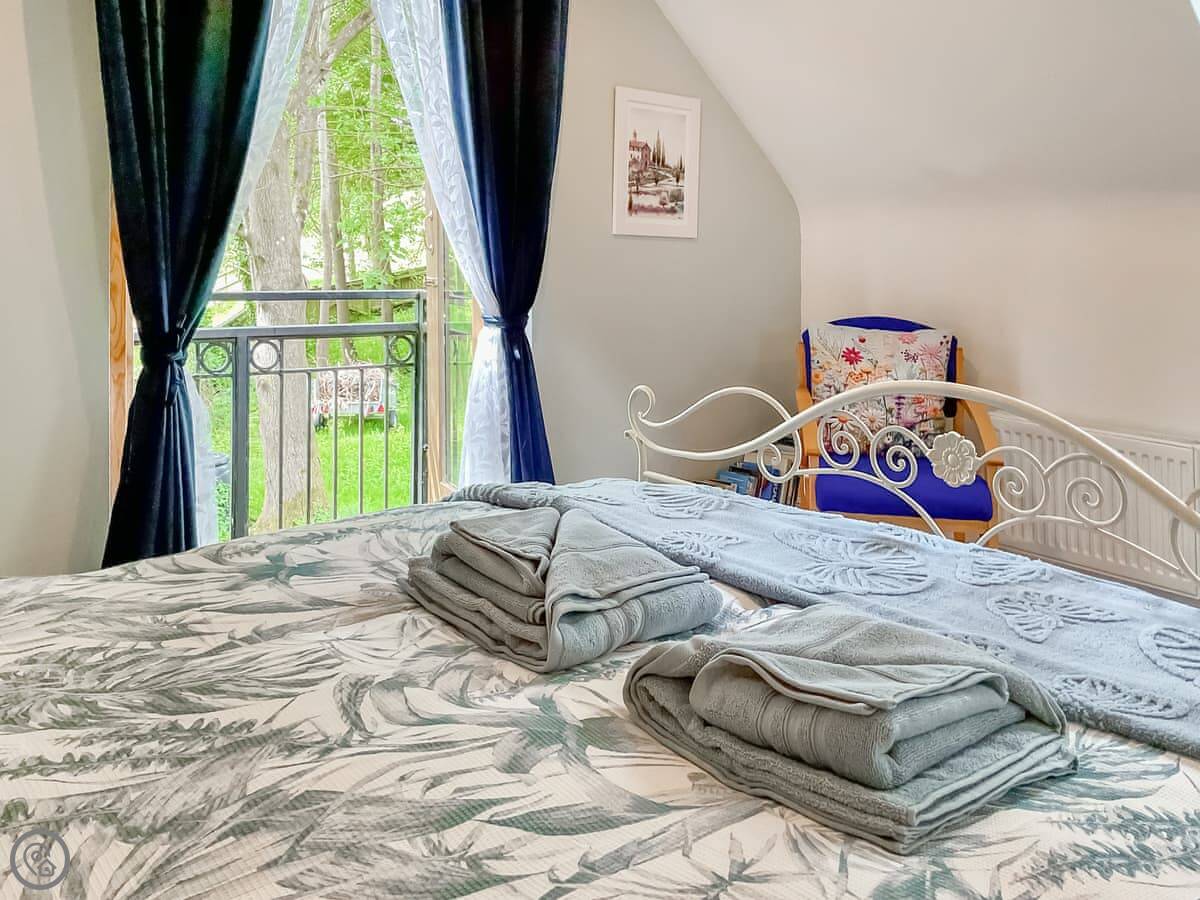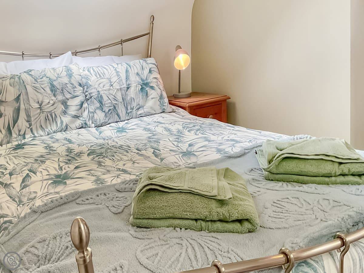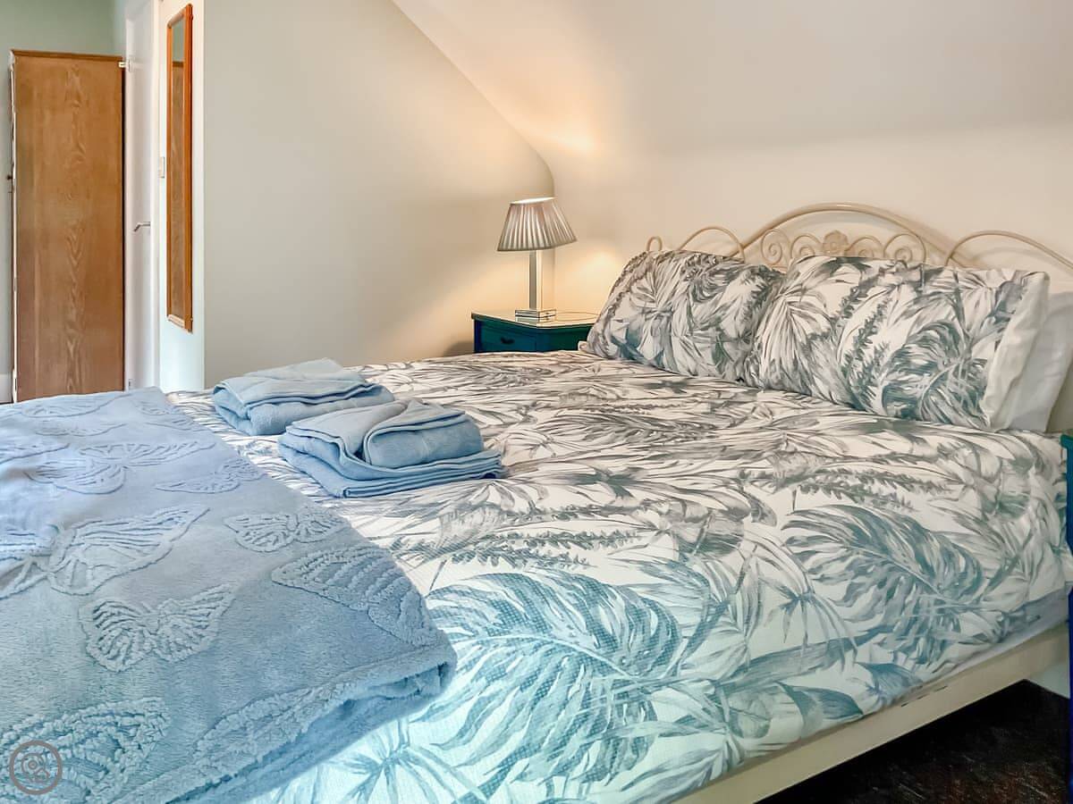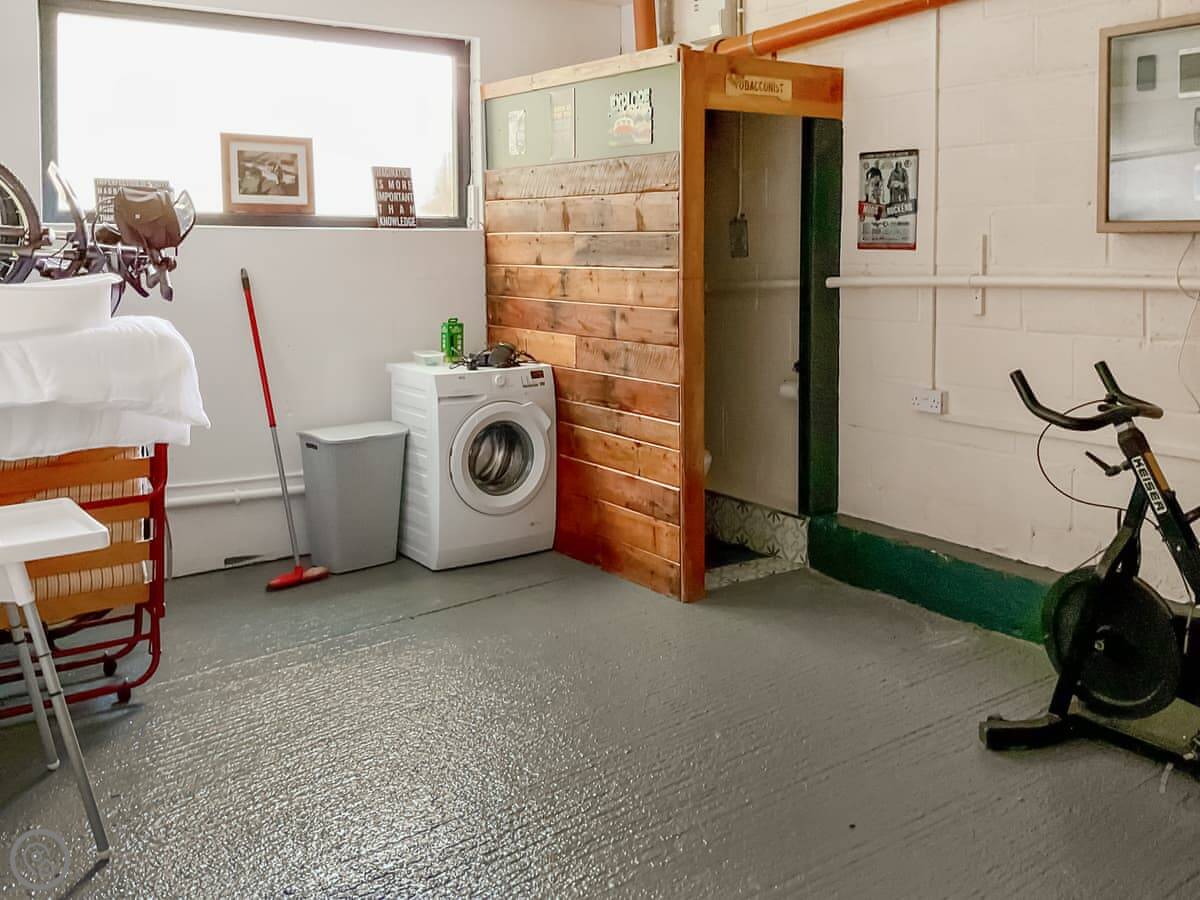 Inside, it's got a TV, WiFi, and a washing machine. All the bedding and towels are included. They've decorated it for Christmas if you're booking over the festive period.