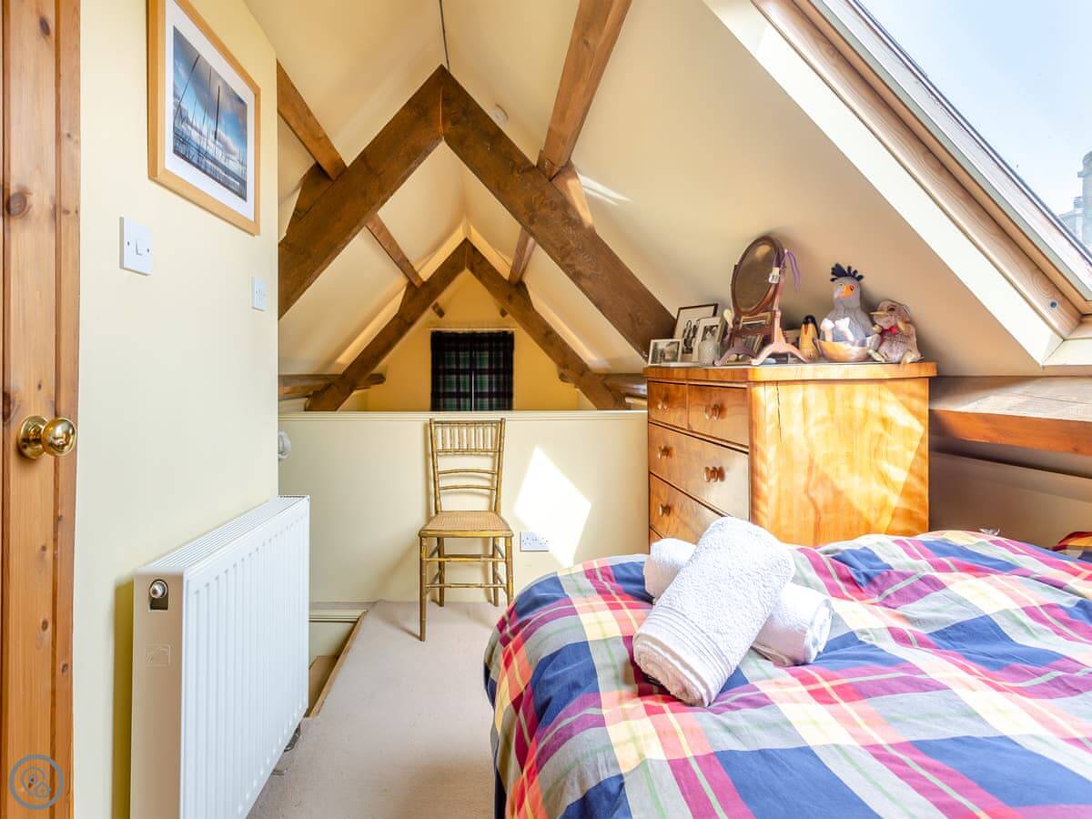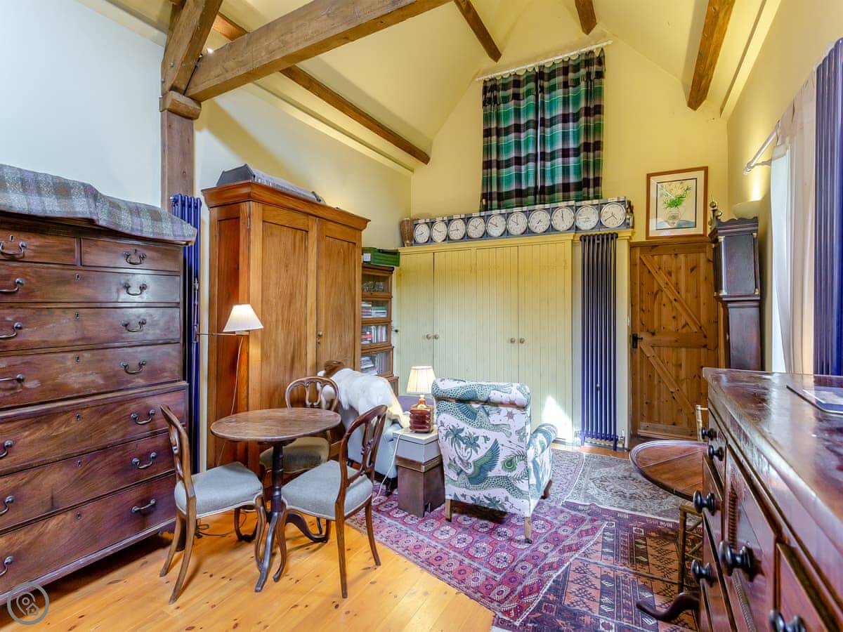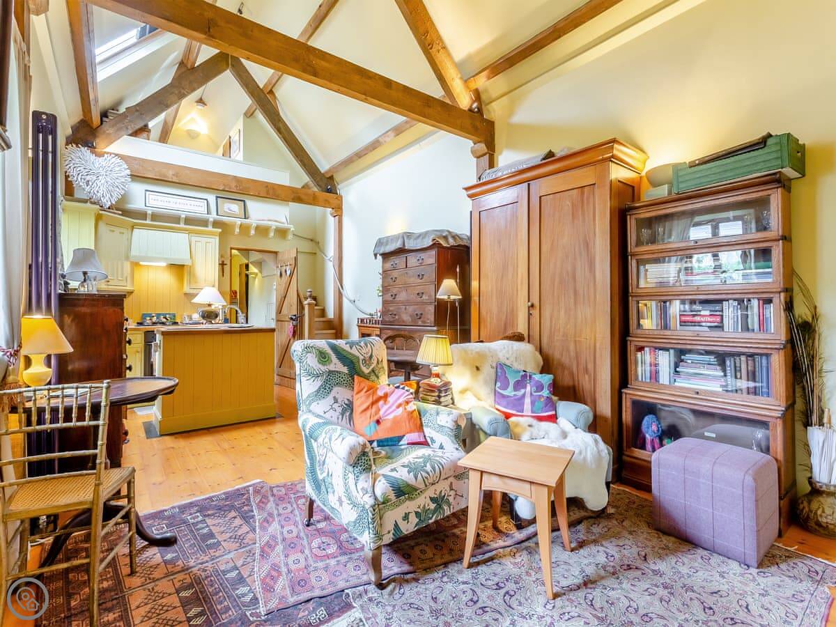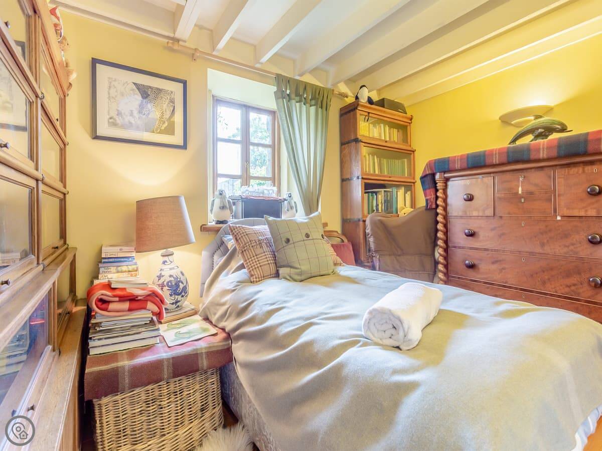 The place sleeps three. Two bedrooms, two bathrooms. It's a 4 Star place, so it's comfortable and has everything you need. It's not a modern new-build. It's got its own character, with some older furniture and artwork. The garden is across the lane. It’s enclosed and gets the sun most of the day.