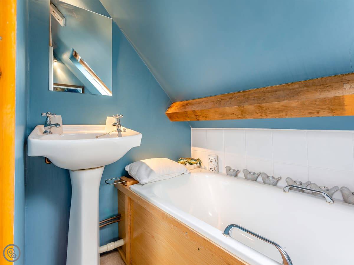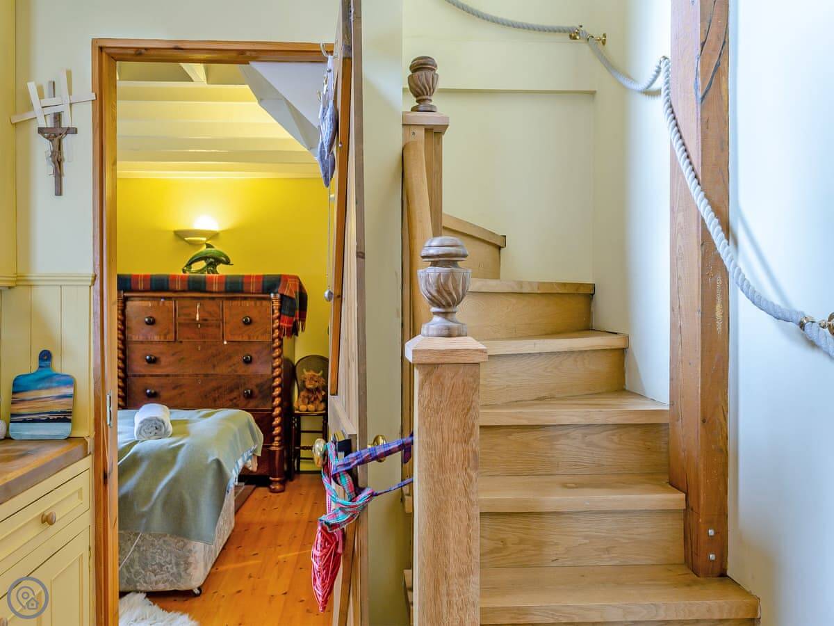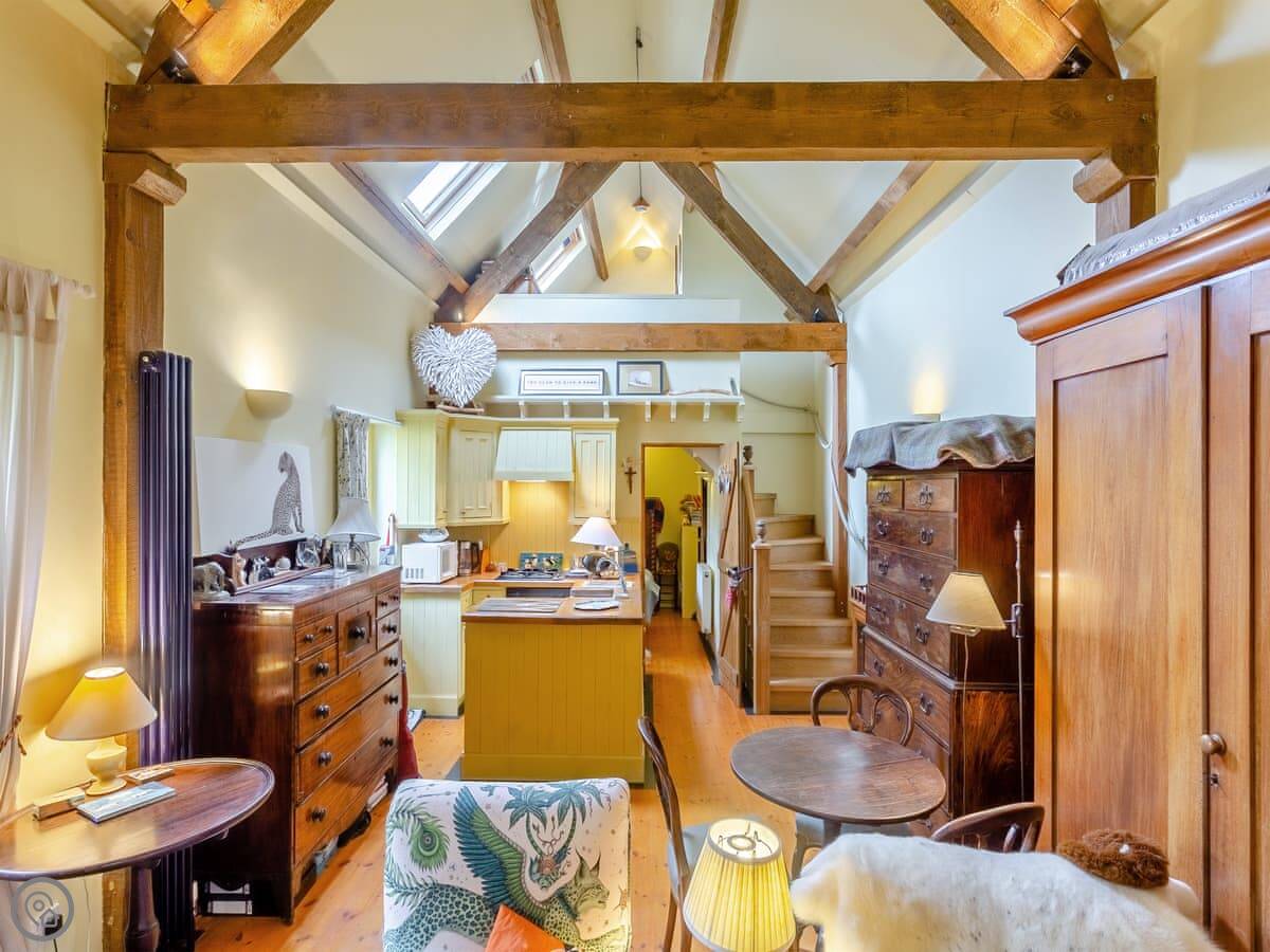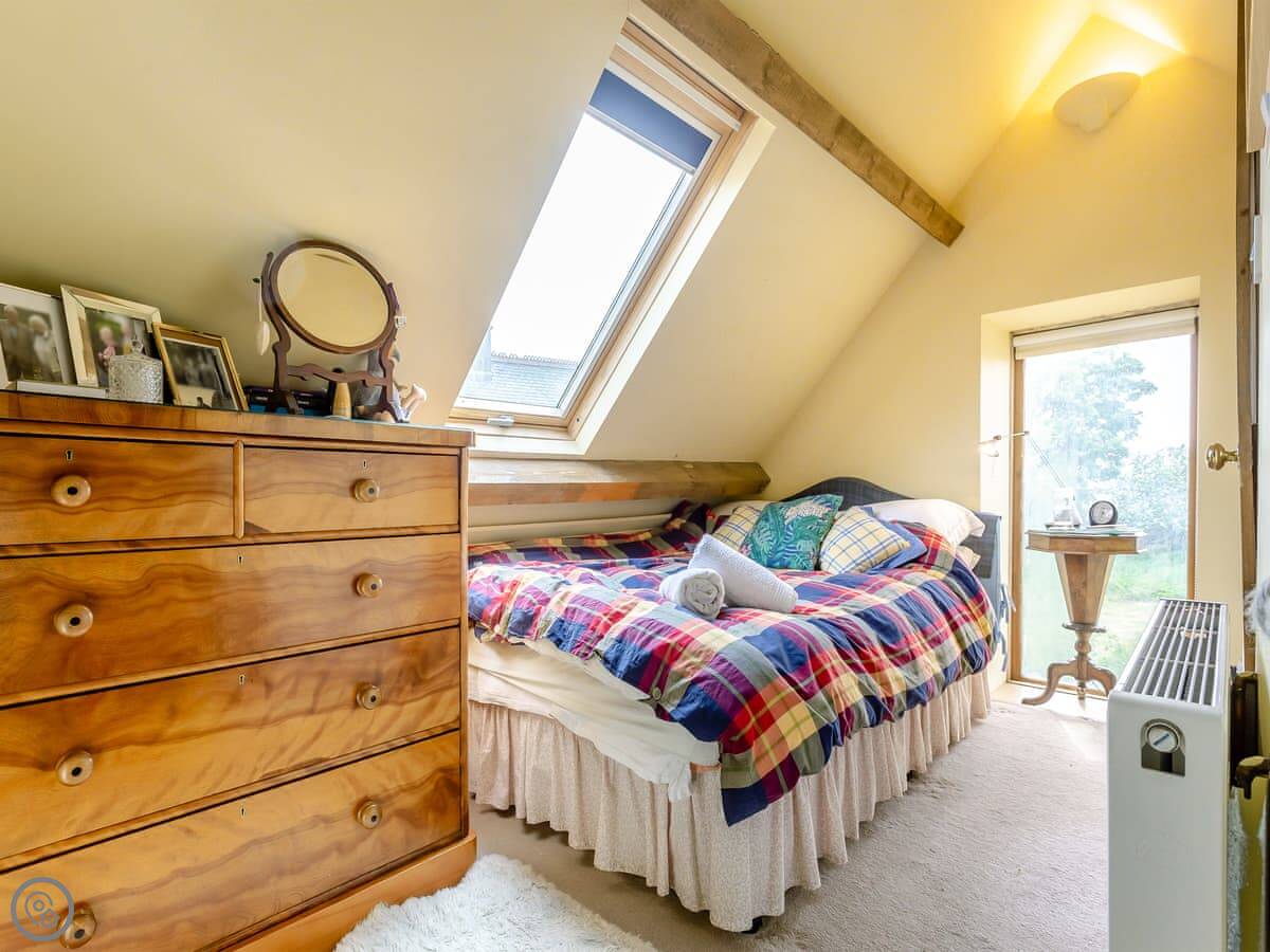 The place sleeps three. Two bedrooms, two bathrooms. It's a 4 Star place, so it's comfortable and has everything you need. It's not a modern new-build. It's got its own character, with some older furniture and artwork. The garden is across the lane. It’s enclosed and gets the sun most of the day.