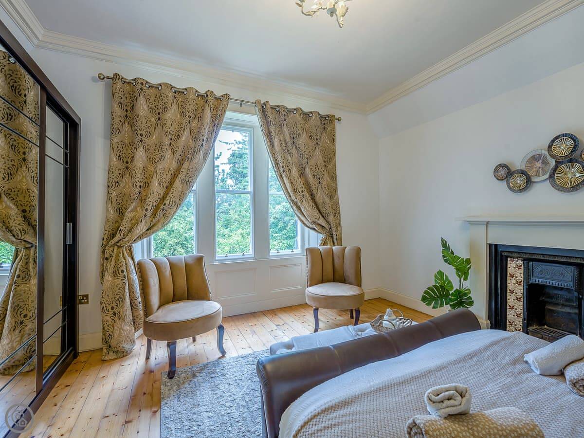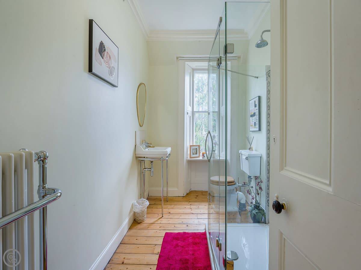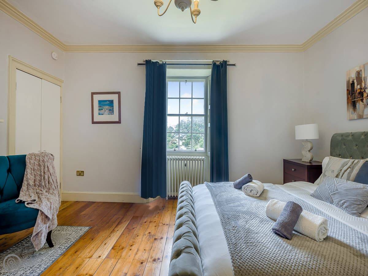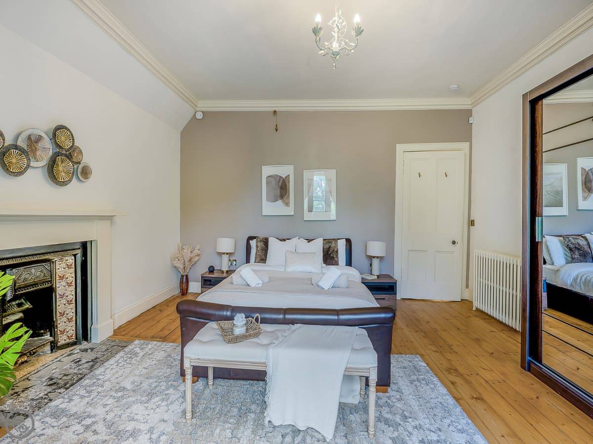 Five of the bedrooms are on the first floor. Two have super king beds, three have king beds. There are three bathrooms up there. The sixth bedroom is a single on the lower ground floor, next to a shower room. That can be useful if someone doesn't want to use the stairs.