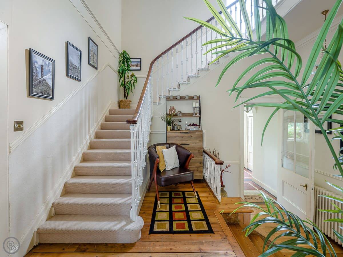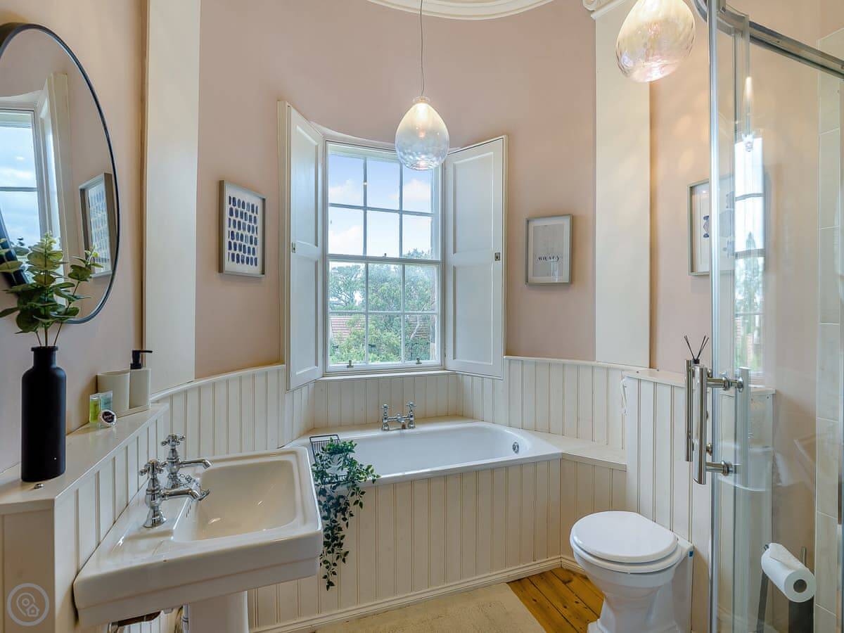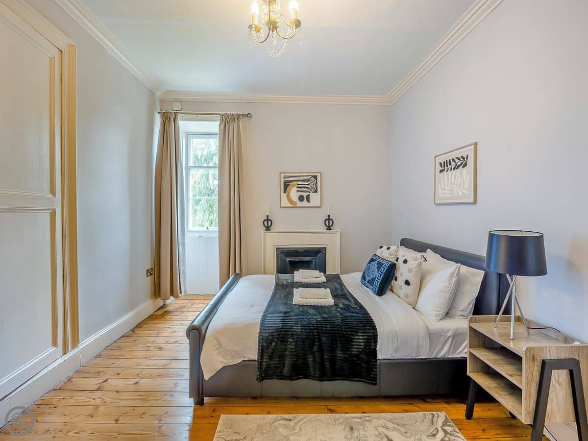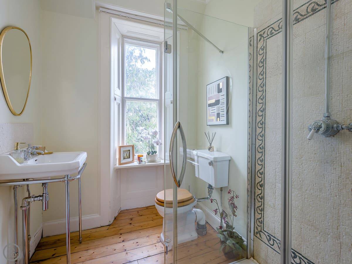 Five of the bedrooms are on the first floor. Two have super king beds, three have king beds. There are three bathrooms up there. The sixth bedroom is a single on the lower ground floor, next to a shower room. That can be useful if someone doesn't want to use the stairs.