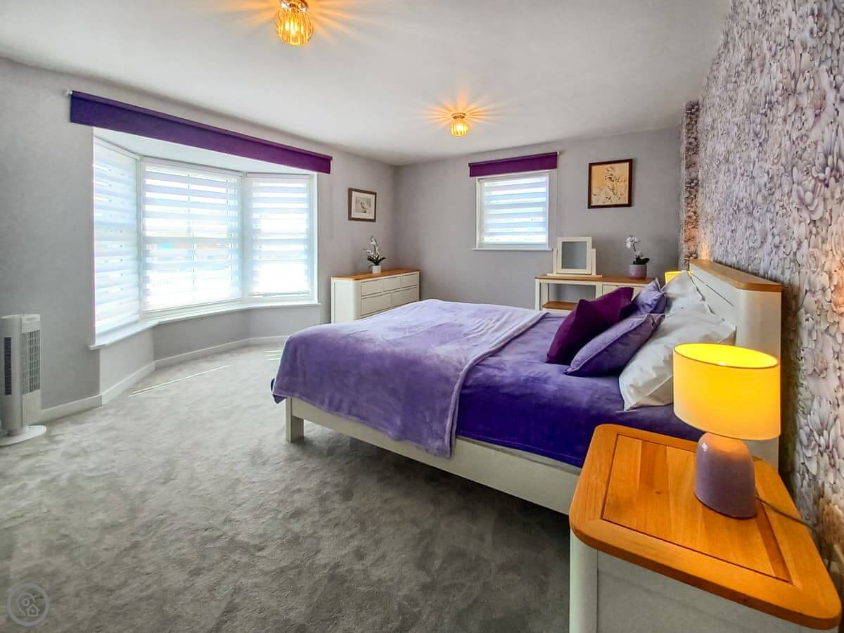 There are four bedrooms and two bathrooms. It's got a 5 Star rating, which means it's in good order and has everything you'd need. The rooms are quite big, so you won't feel on top of each other. The master has a walk-in wardrobe. All the bedrooms have a fan for summer.
