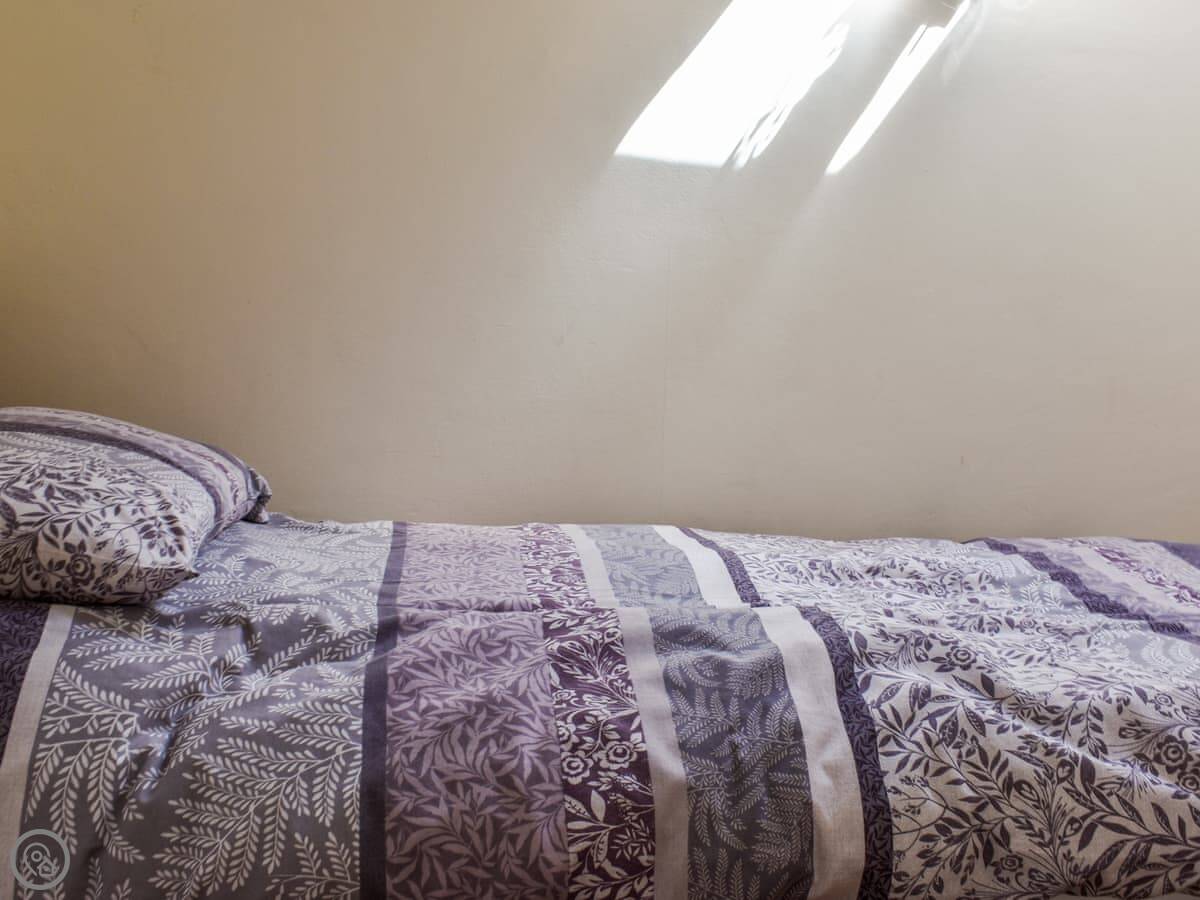 It sleeps three. Two bedrooms, one's a double and one's a single, and a bathroom with a shower over the bath. It's got a 4 Star rating. It's well put together. The ceilings upstairs are vaulted with Velux windows, so it's bright. Good for looking at the stars.