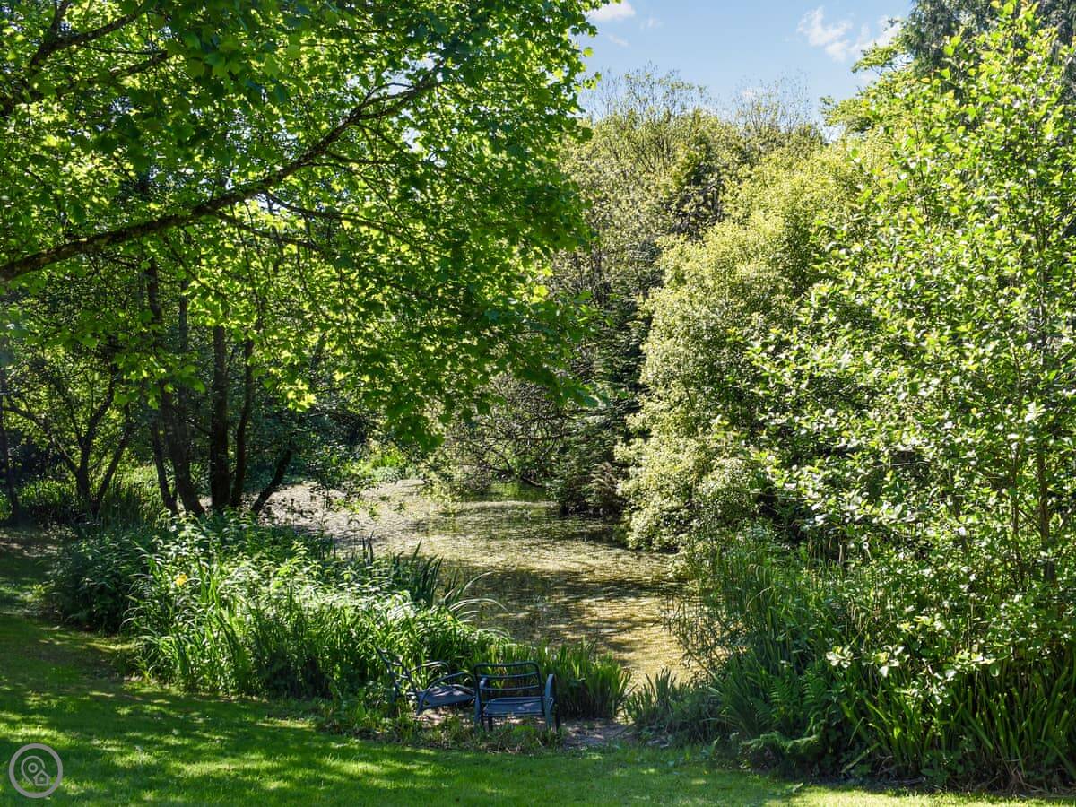 You get your own little patio area with a table and chairs. There's a big shared garden with a pond. There are ducks. You can feed them.