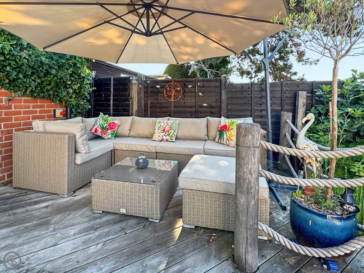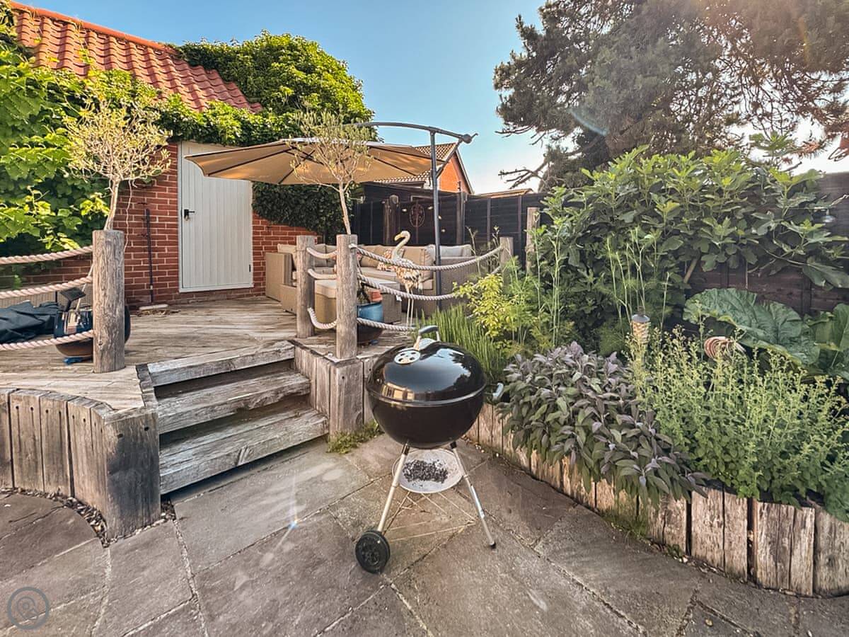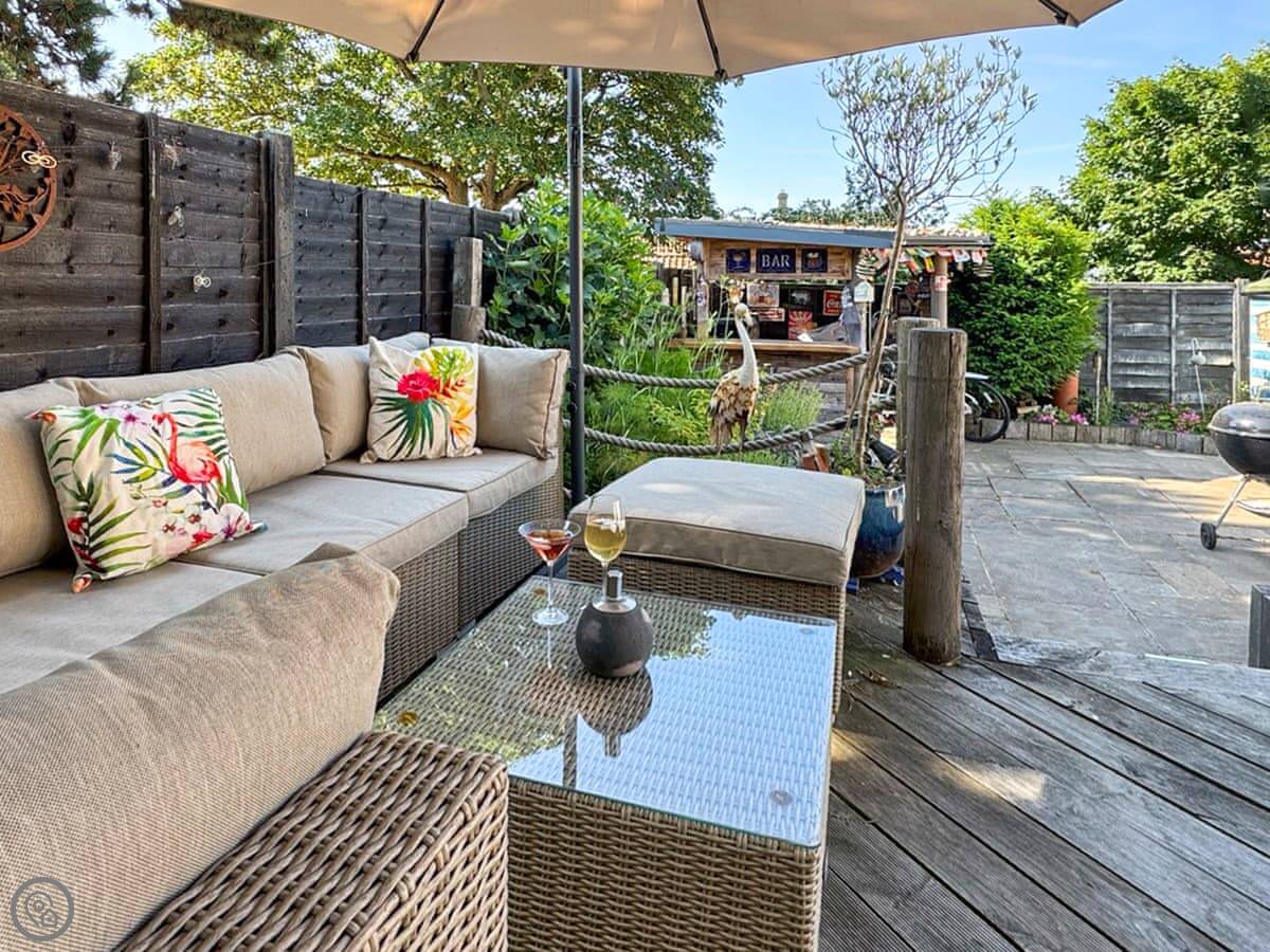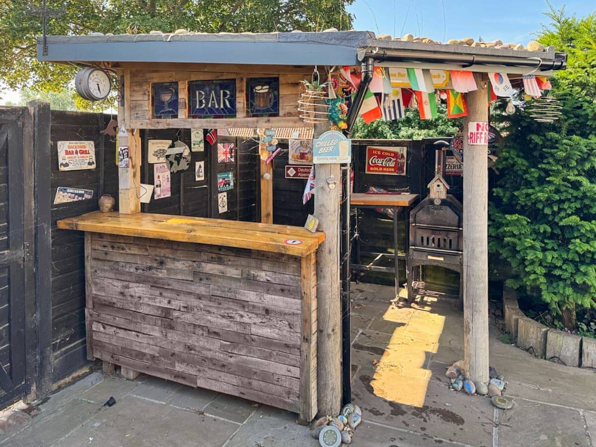 Hill House is in Snape village. It's a detached house. The main thing is that it's got a covered outdoor bar area at the bottom of the garden. That's slate-topped, with power, lighting and a beer fridge. People seem to like it.