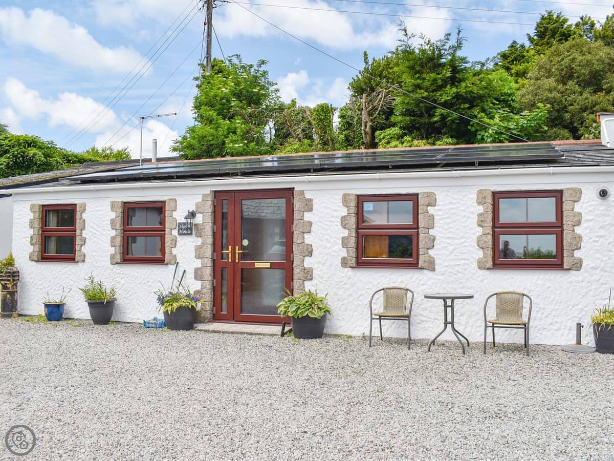 Hosta House is a one bedroom bungalow on our land in Tregullon, Cornwall. It's all on one floor which is handy. The views are out over the fields towards the moor. It's very quiet here.